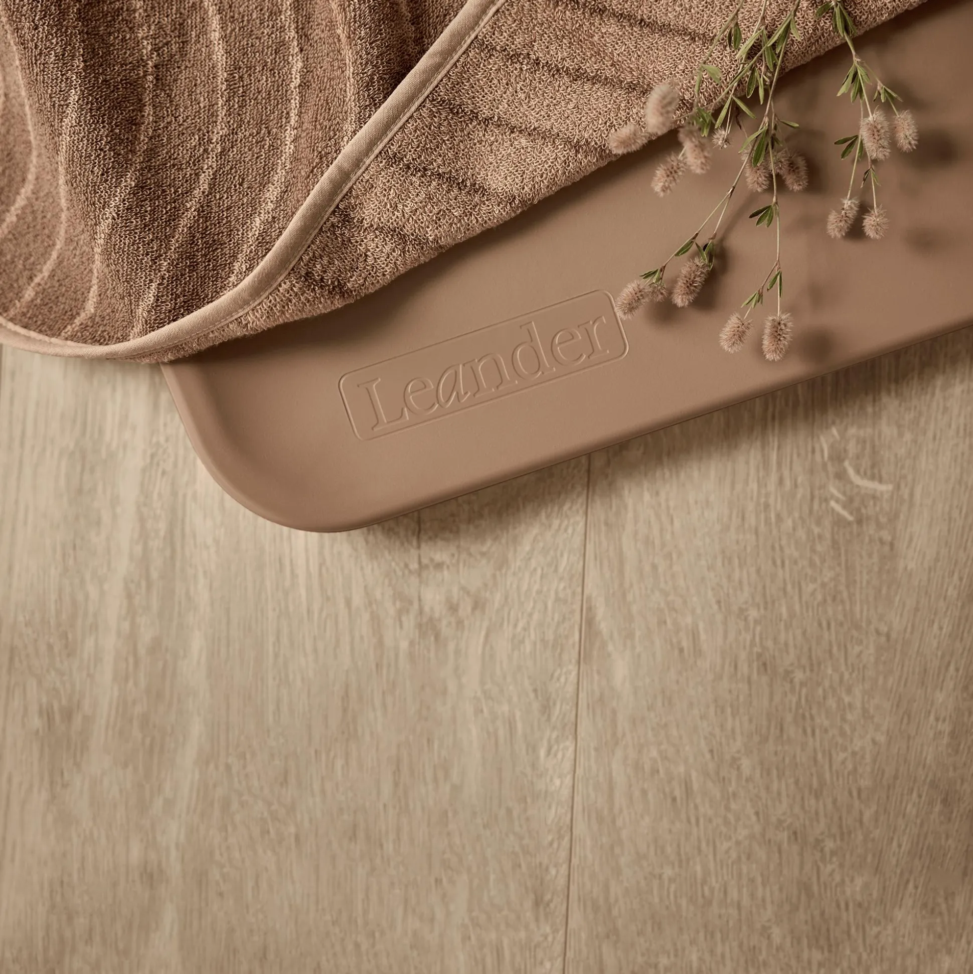 Der Topper Woodland Clay von Leander eignet sich ideal für die Matty Wickelauflage. Die hochwertige Jacquardwebung sorgt für eine ansprechende Optik und bietet zwei unterschiedlich gestaltete Designs.