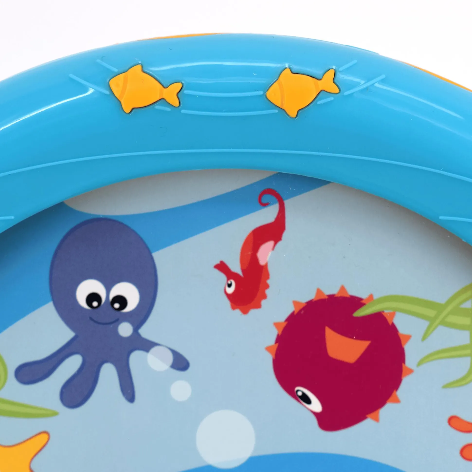 Mit der Voggenreiter Meerestrommel kann dein kleiner Schatz spielerisch in die Welt der Klänge abtauchen! Diese Rassel mit bunten Fischapplikationen und sanftem Rauschen kleiner Kugeln bietet nicht nur höchste Qualität, sondern auch sicheren Spielspaß: Dank geprüfter Materialien und patentierter Verschlusstechnik musst du dir keine Sorgen machen. Leicht kippbar fördert die Trommel zudem spielerisch die musikalische Früherziehung deines kleinen Entdeckers.
