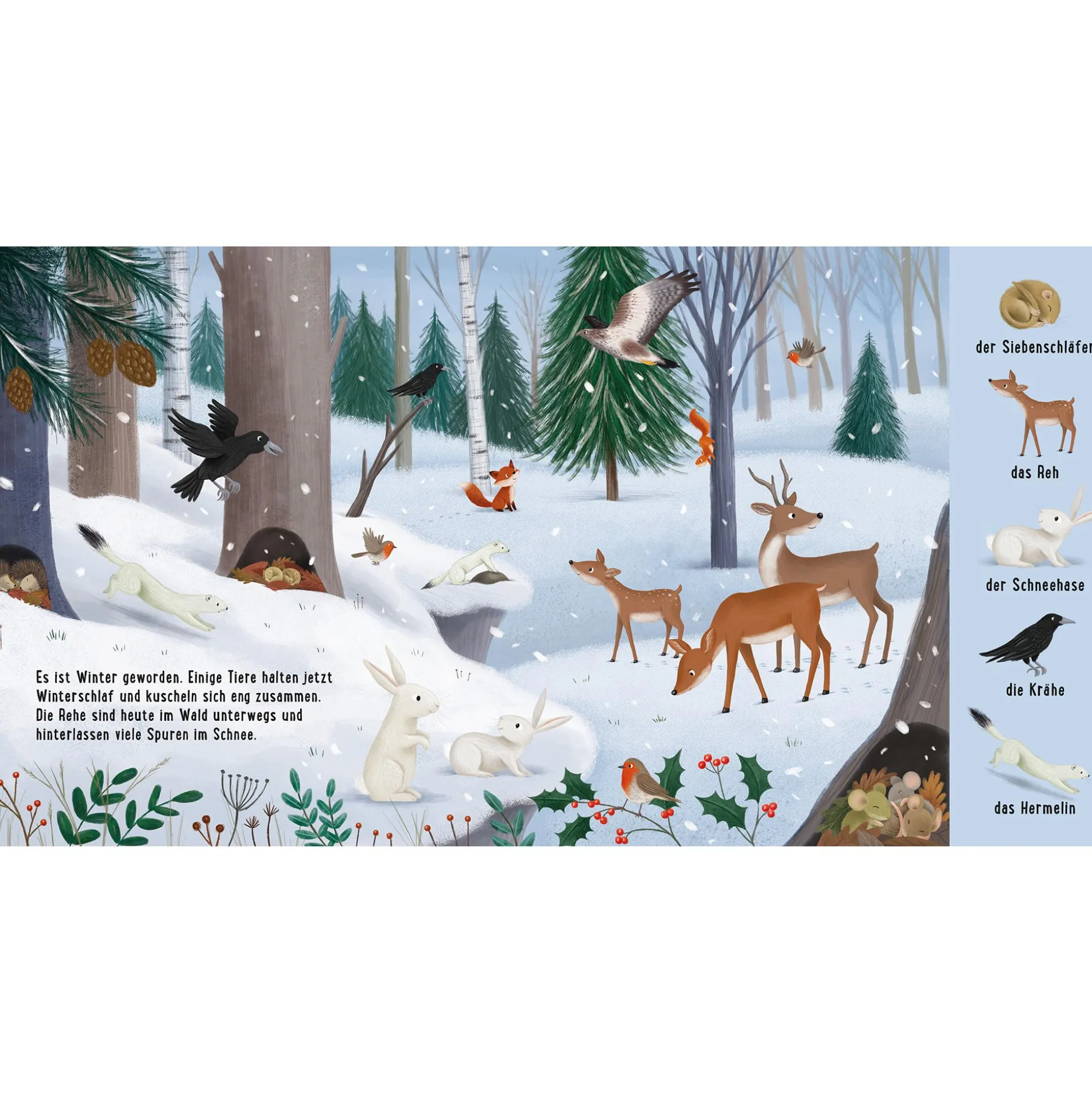 Erste einfache Wimmelbilder rund um heimische Tiere im WaldDer ganze Wald in einem Buch – am Tag, in der Nacht und durch die Jahreszeiten: Welcher Vogel klopft da so laut am Morgen? Wo versteckt sich die neugierige Maus? In farbenfrohen und detailreichen Wimmelbildern können kleine Entdecker ab 2 Jahren ihre Lieblingstiere wie das Eichhörnchen und das Reh beim Spielen oder bei der Futtersuche beobachten. Auf jeder Doppelseite gibt es eine völlig neue Szene zu bestaunen: