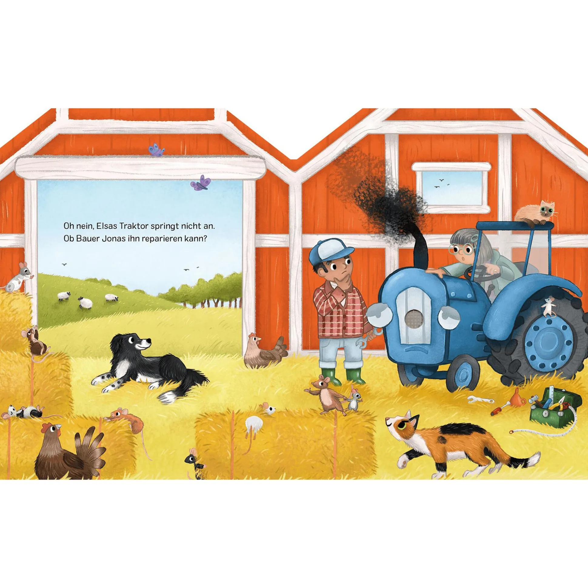 Herzlich willkommen auf dem Bauernhof! Hier ist immer etwas los: Hans Hahn kräht, Kuh Frieda macht „Muh!“, die Schäfchen blöken und Schwein Schorsch und seine Freunde grunzen fröhlich. Und wie klingt der Traktor von Bauer Jonas? Drück doch mal auf den Knopf!