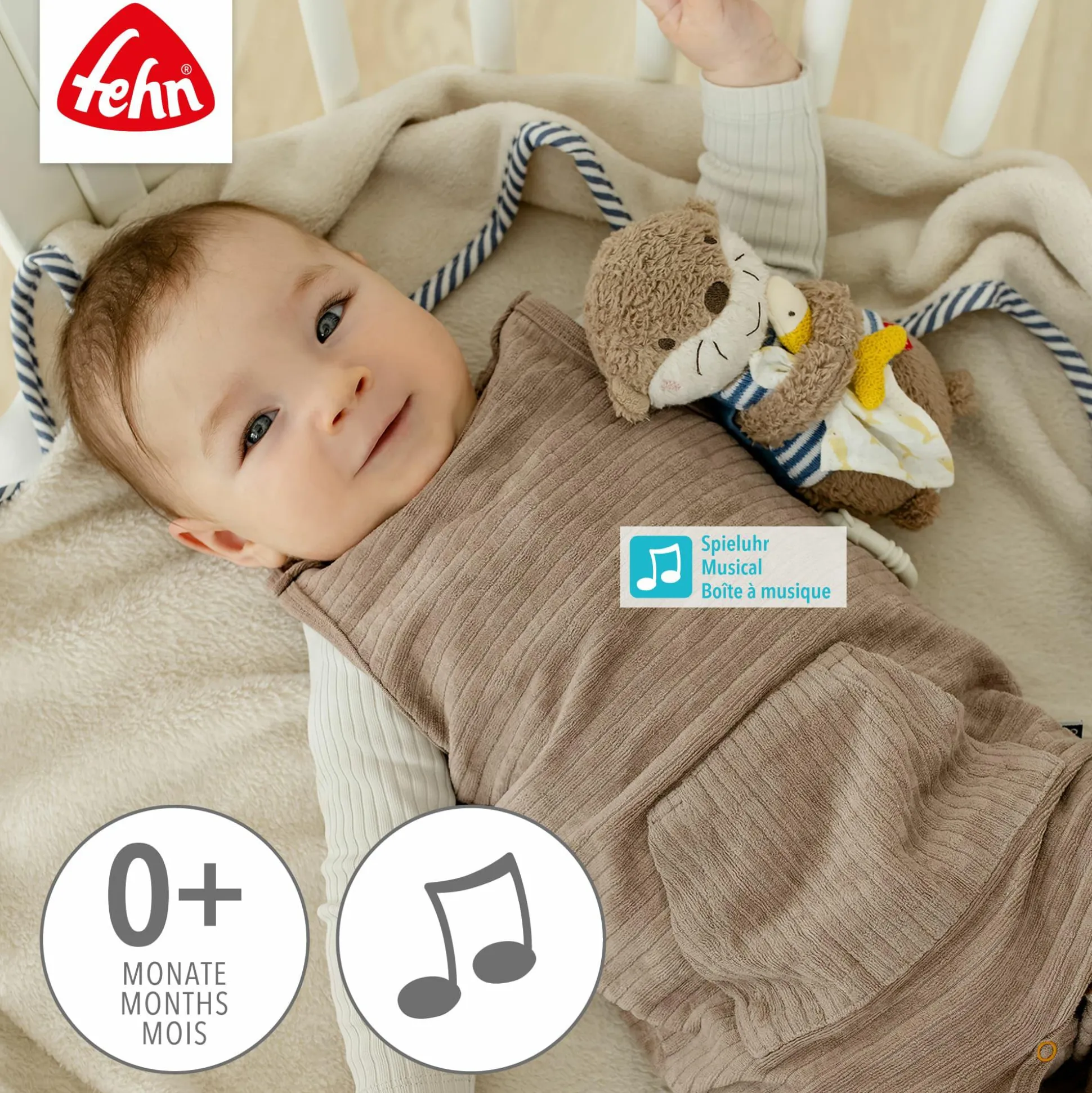 Getarnt als Mini-Spieluhr von fehn spielt der kleine Otter Theo deinem Baby das perfekte Schlummerlied vor. Während dein Liebling mit Theo kuschelt, kann gleichzeitig Brahms‘ Wiegenlied abgespielt werden. Schnell wird es zum Lieblingskuscheltier deines Kindes und soll am besten überall mit hingenommen werden. Und da der freundliche Otter das schon geahnt hat, kann er dank der praktischen Befestigungsbändchen ganz leicht am Babybett, am Kinderwagen oder an der Babyschale befestigt werden. Doch Theo hilft deinem Baby nicht nur beim Schlafen, sondern fördert auch seine sensorischen Fähigkeiten.