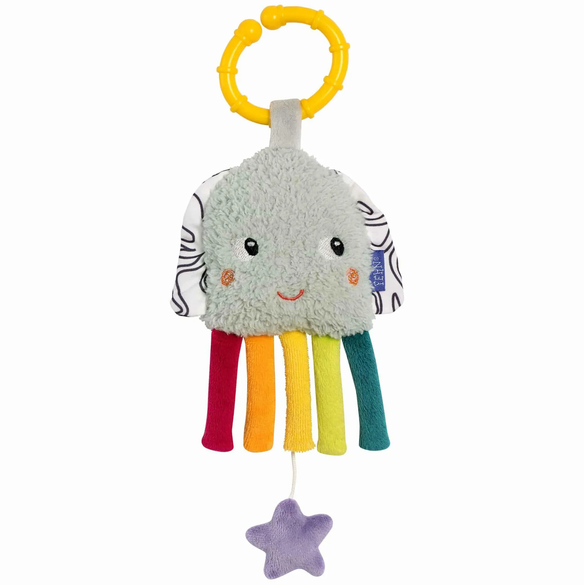 Die Mini-Spieluhr Tintenfisch von fehn bringt bunte Freude und sanfte Klänge in den Alltag deines Babys – perfekt, um von Geburt an kleine Momente voller Geborgenheit zu schaffen.