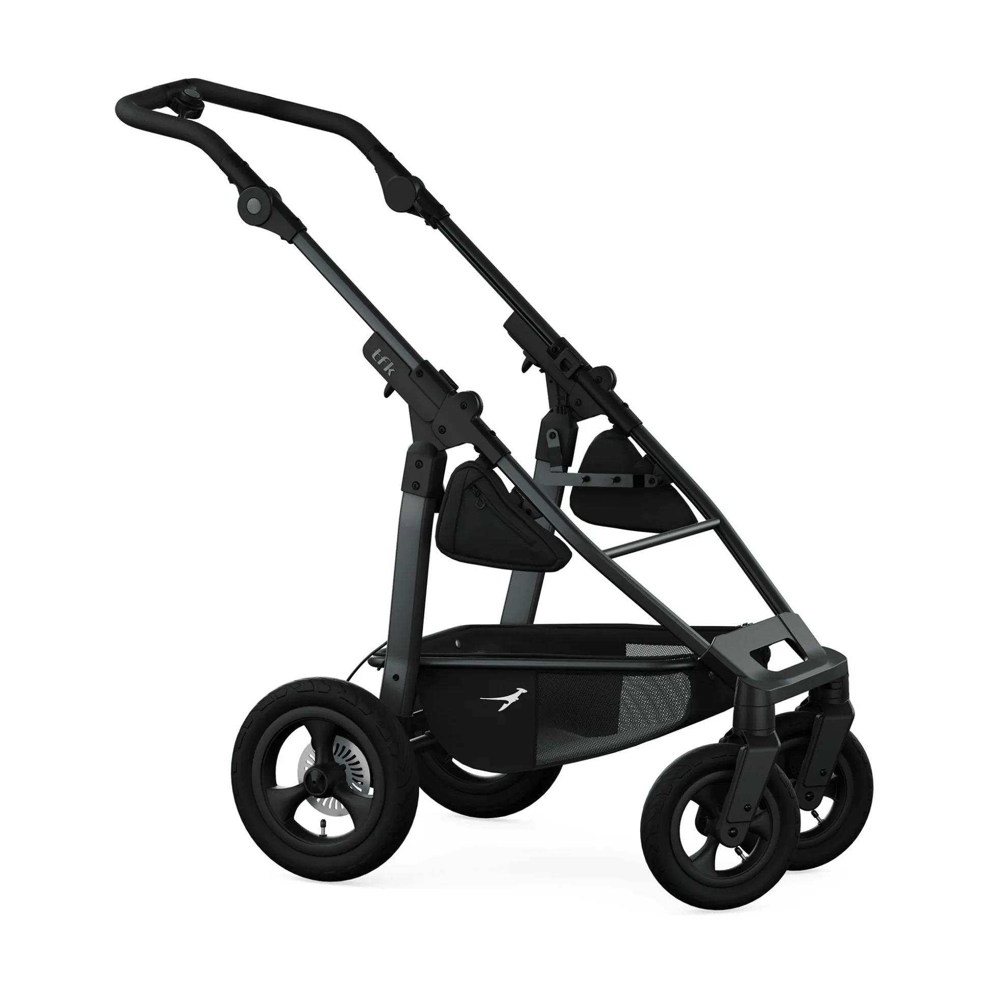 Egal, ob du in der Stadt oder auf unwegsamen Strecken unterwegs bist – dieser Rahmen ist die perfekte Basis für deinen tfk Kinderwagen.