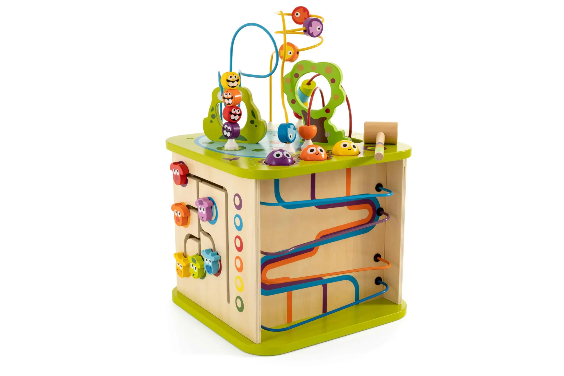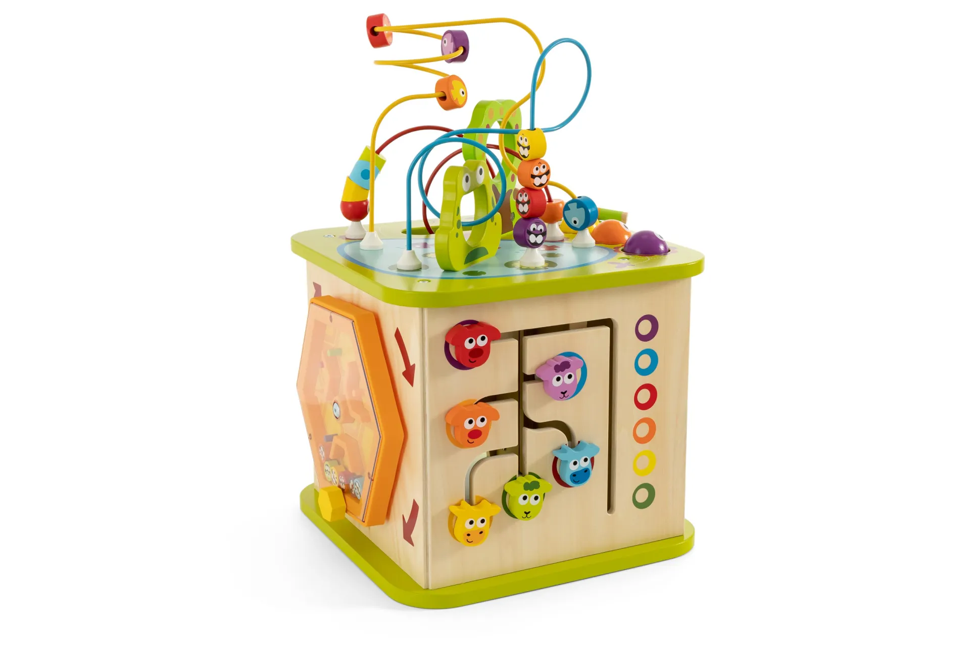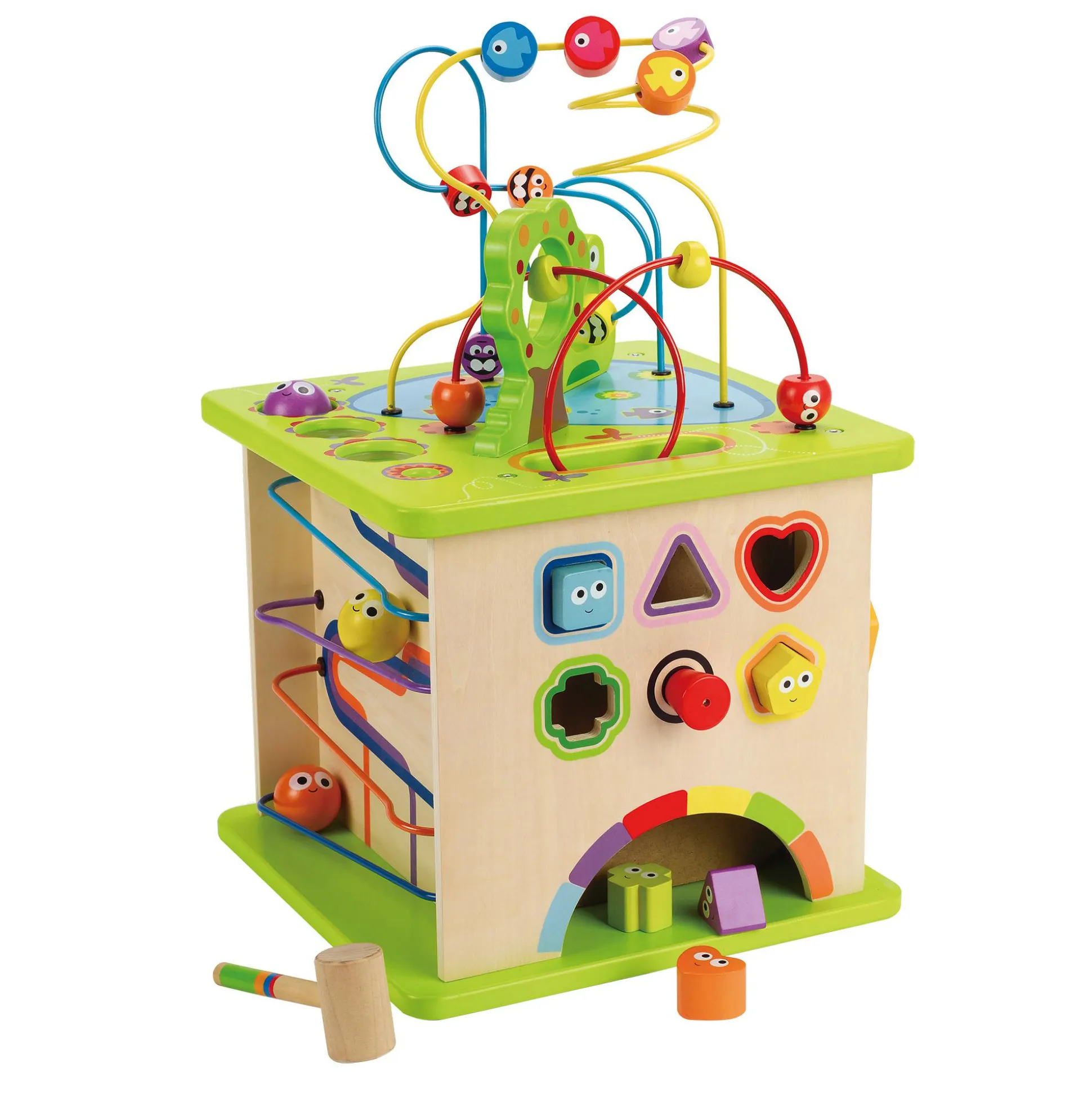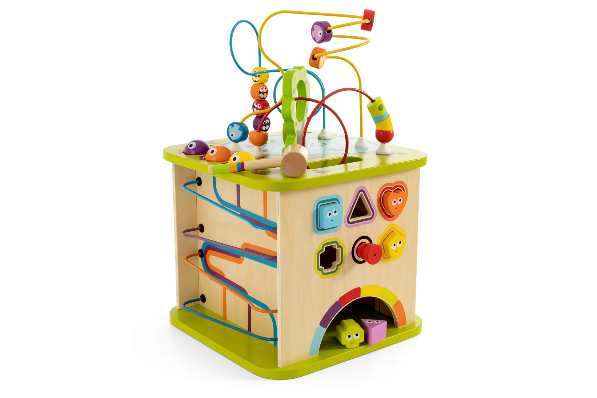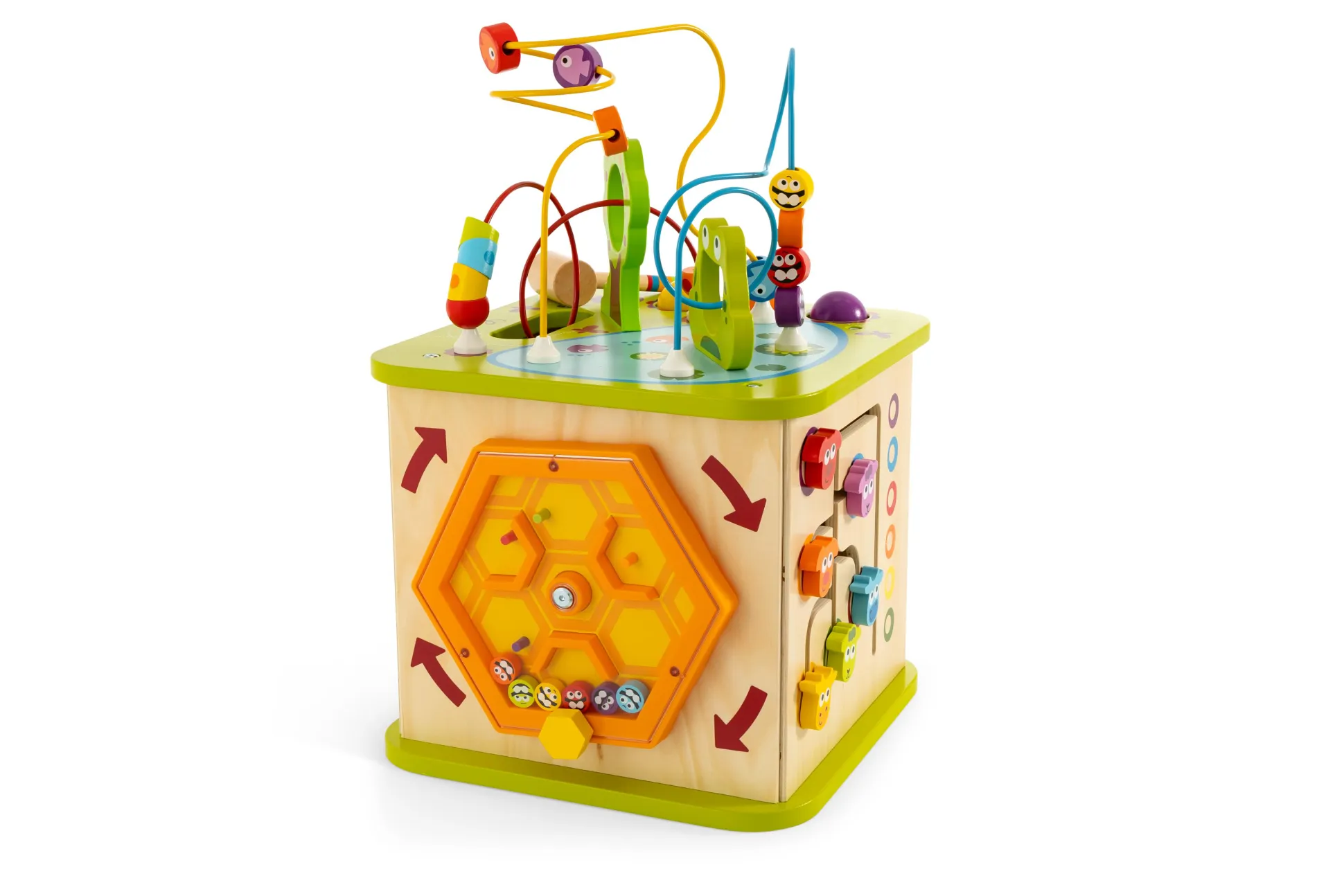 Der Motorikwürfel Kleine Tierchen von Hape ist mit Motorikschleifen, Formen, Hebel und jeder Menge verschiedenen Geschöpfe ausgestattet. Sie verwandeln diesen bunten fünfseitigen Spielwürfel in eine Aktivitäten-Hochburg. Verschiedene Labyrinthe unterstützen die Entwicklung von Feinmotorik und logischem Denken.
