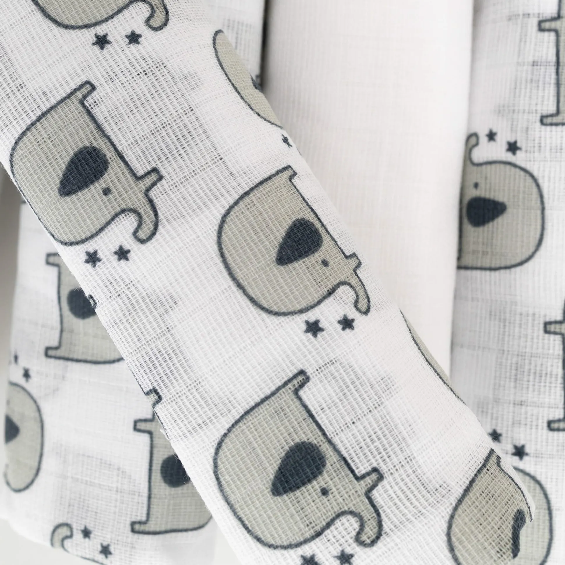 - mit niedlichen Elefanten- und kleinen Stern-Motiven bedruckt und schlicht weiß