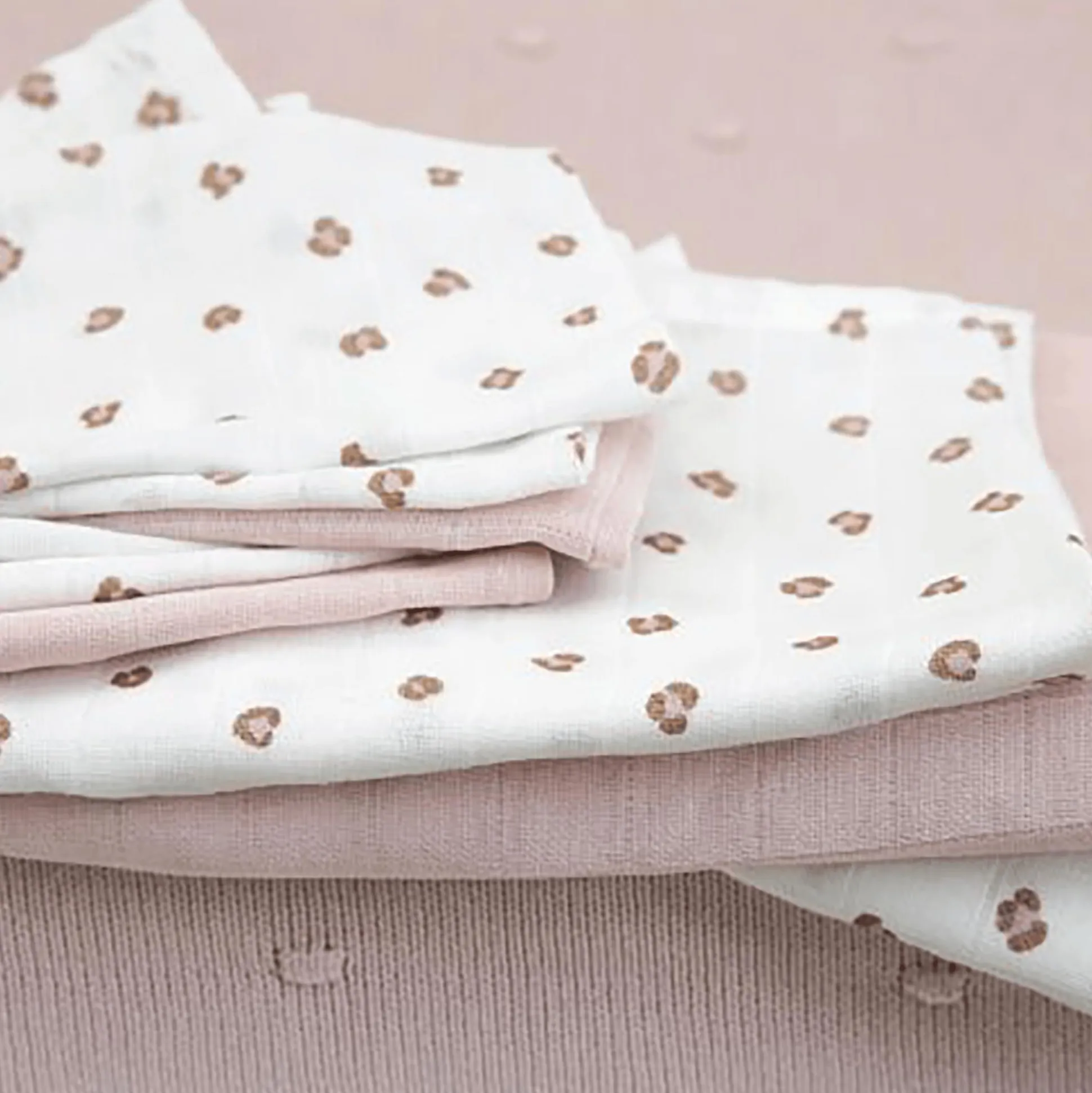 Zum Glück gibt es die hochwertigen Mullwindeln der Qualitätsmarke Meyco gleich im praktischen Dreierpack – und zwar in vielen fröhlichen Dessins. Vom Mini-Panther-Print in Soft Pink über bunte Blumenmuster, dekorative Muschel-Motive und originelle Drucke im Tierfell-Look bis zum hygienisch-schlichtem Weiß uni: Wähle jetzt deine individuellen Favoriten und stelle dir deine ganz private Kollektion zusammen!