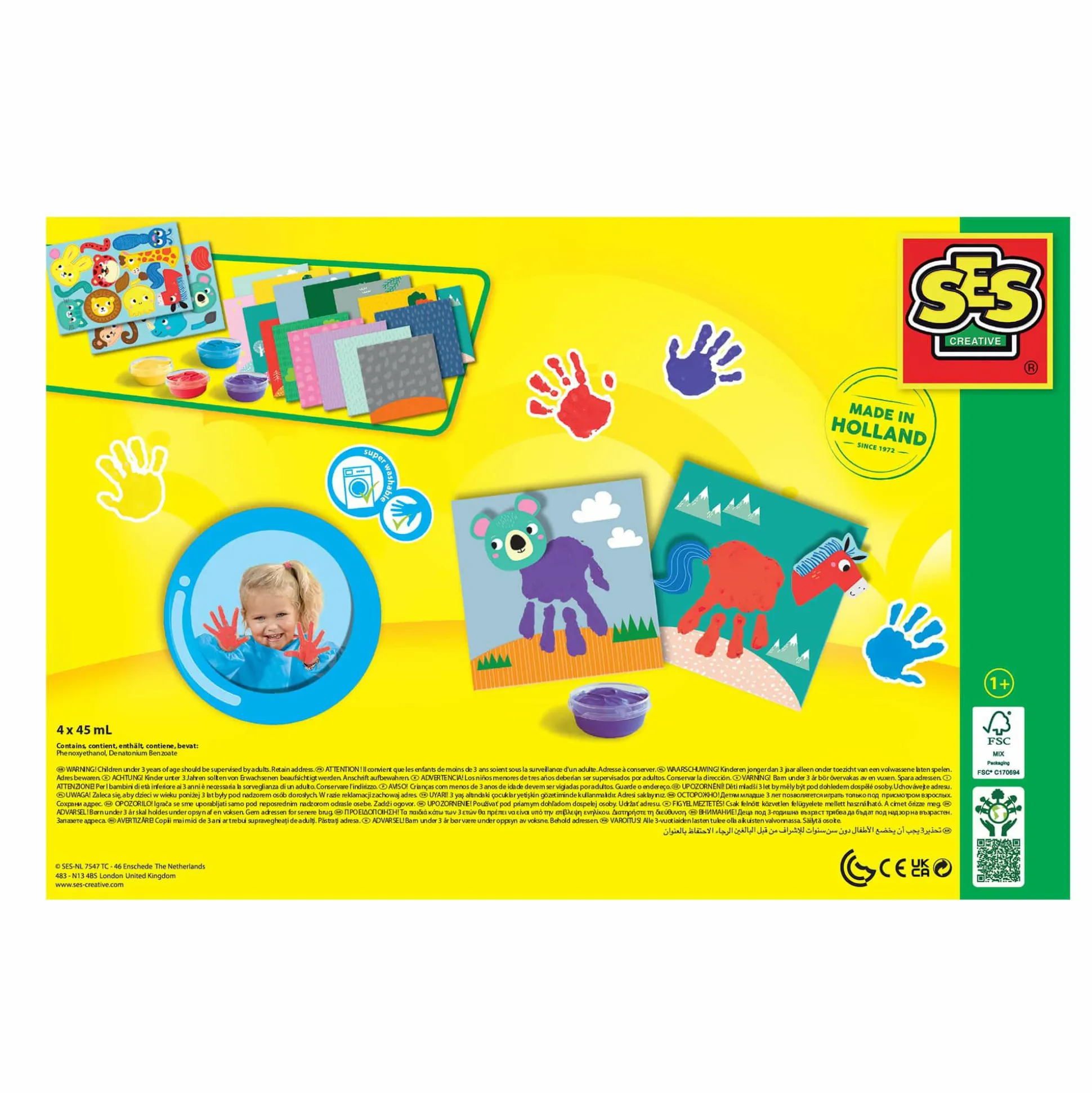 Mit dem Set My first – Fingerfarbe Handabdruck Tiere von SES CREATIVE ersetzen die kleinen Kinderhände den Pinsel.