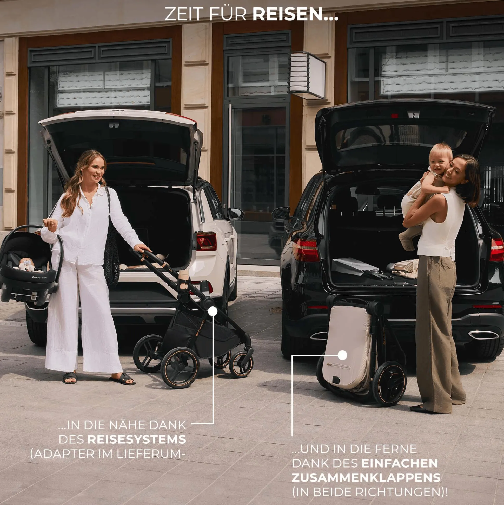 - kompaktes Zusammenklappen mit Sitz in beide Richtungen