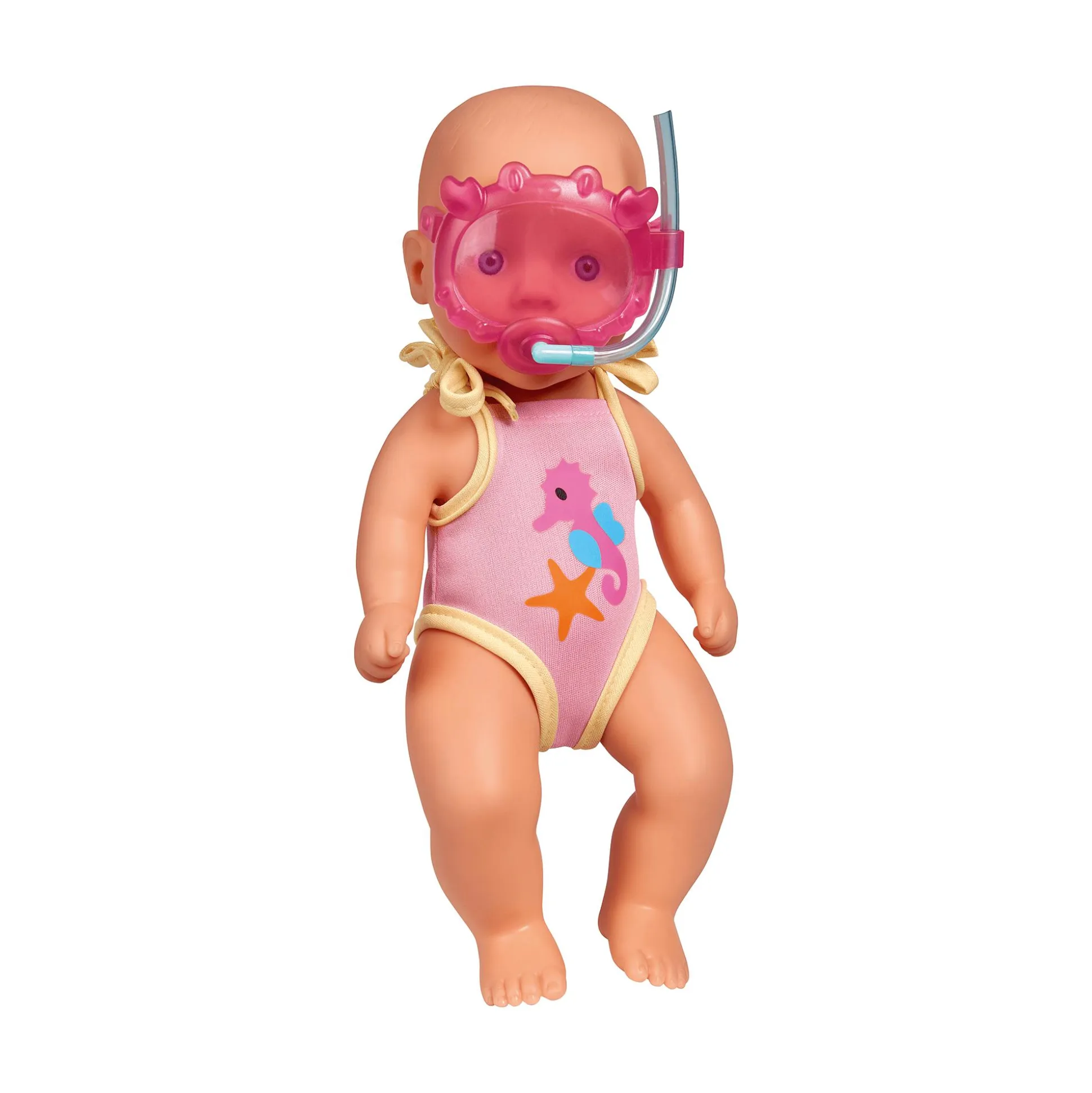 Die entzückende New Born Baby Badepuppe von Simba ist mehr als nur ein Spielzeug – sie wird das Herz deines kleinen Lieblings im Nu erobern! Sie ermöglicht ein fantasievolles Spielerlebnis. Die niedliche rosa Schwimmbrille, der Schnorchel und der Badeanzug mit süßem Seepferdchen- und Seesternmotiv, welcher an den Schultern zusammengebunden und auch ausgezogen werden kann, laden zu spannenden Abenteuern im Wasser ein. Mit einer Größe von ca. 30cm ist sie perfekt für die kleinen Kinderhände ab 3 Jahren geeignet.