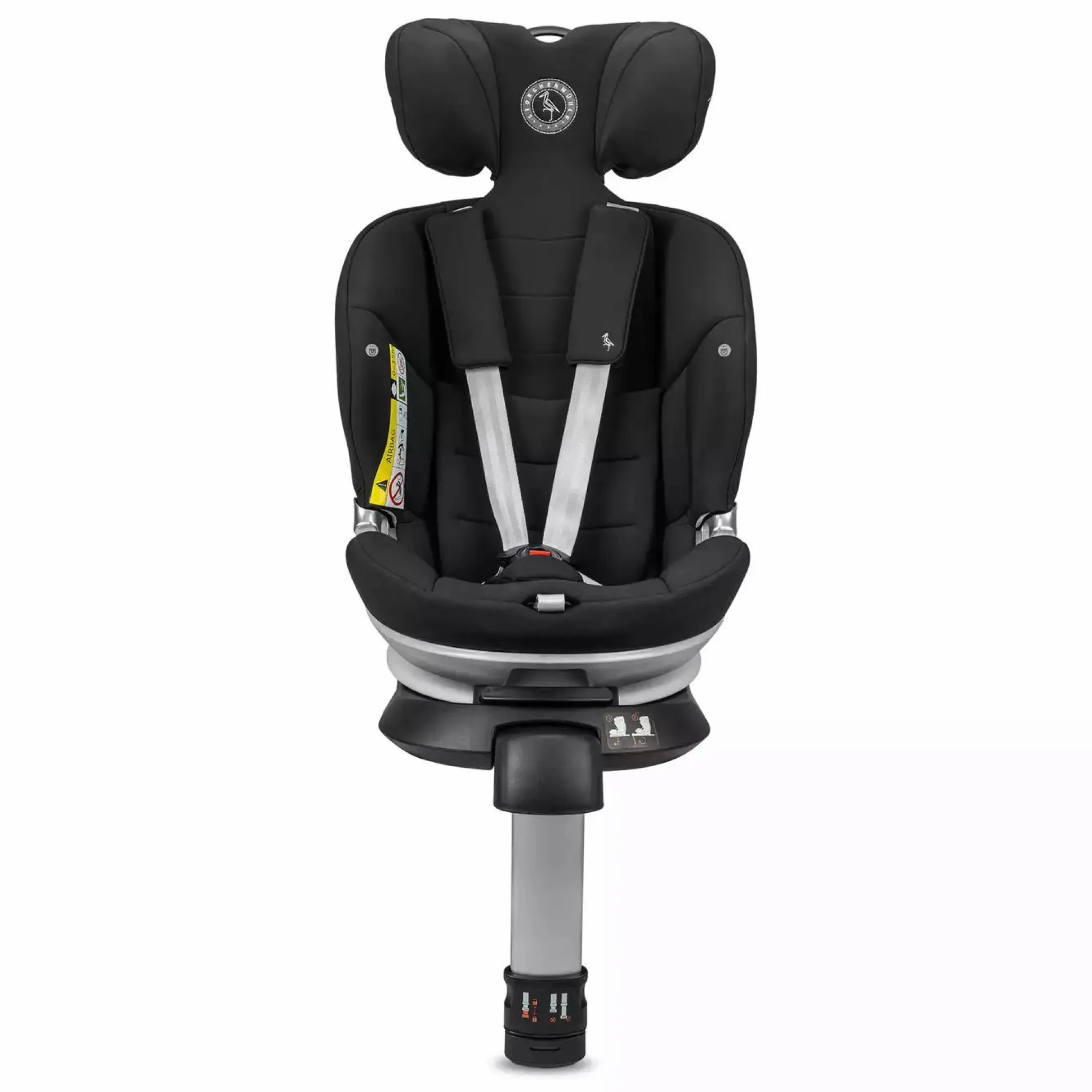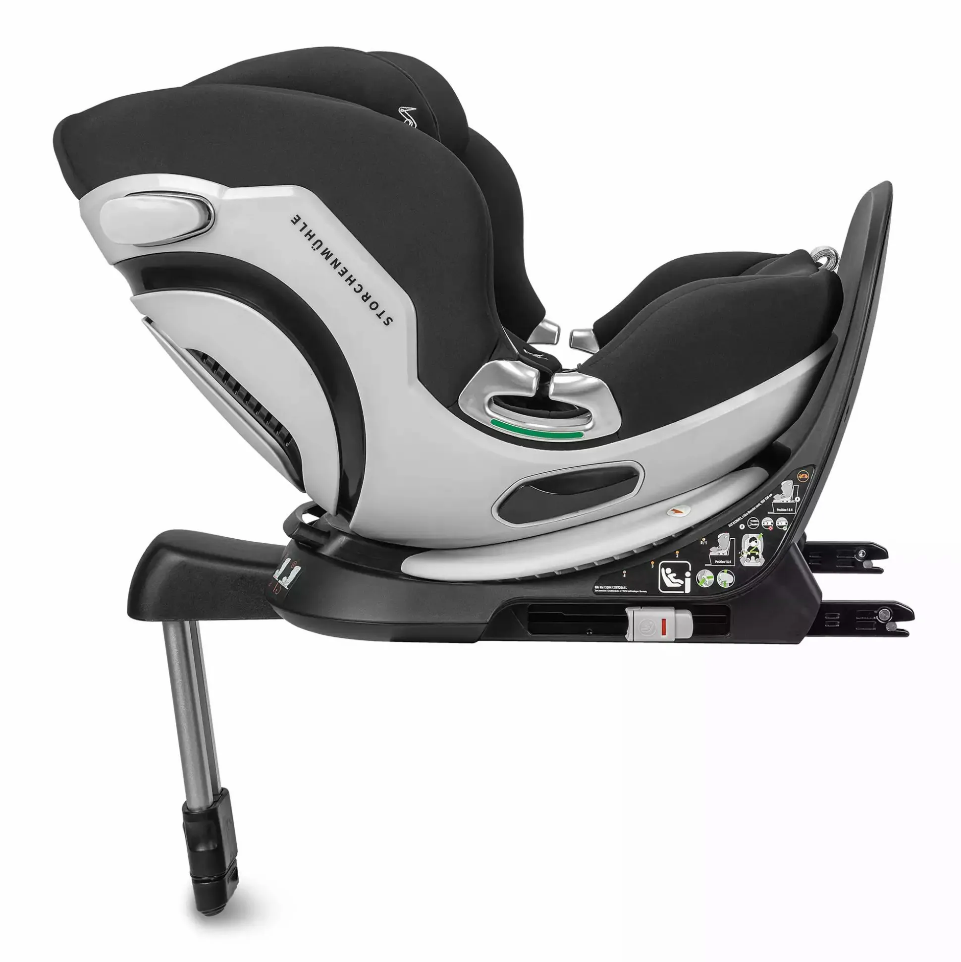 - Installation bis 100 – 105 cm: ISOFIX und Standfuß zur zusätzlichen Fixierung