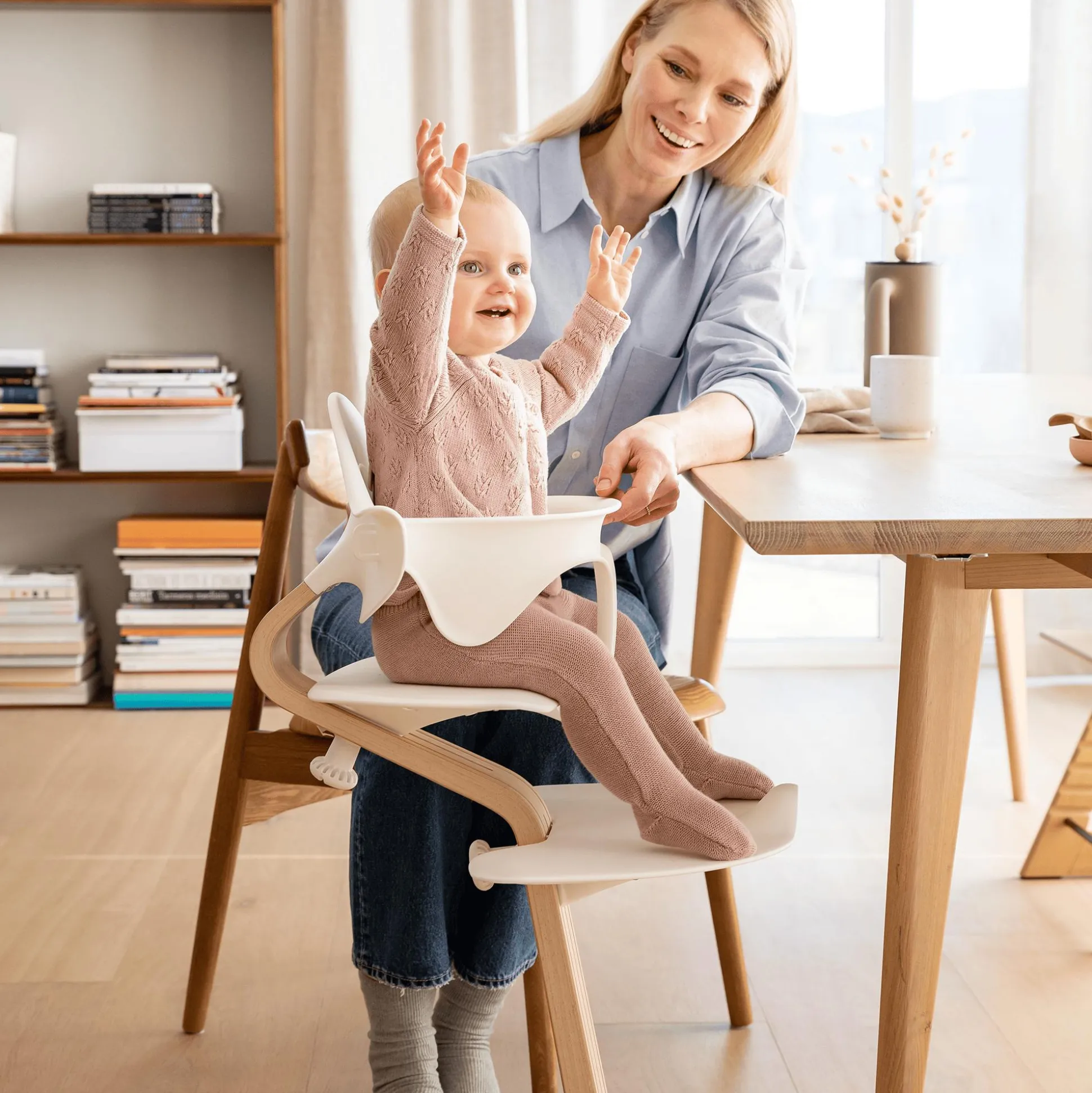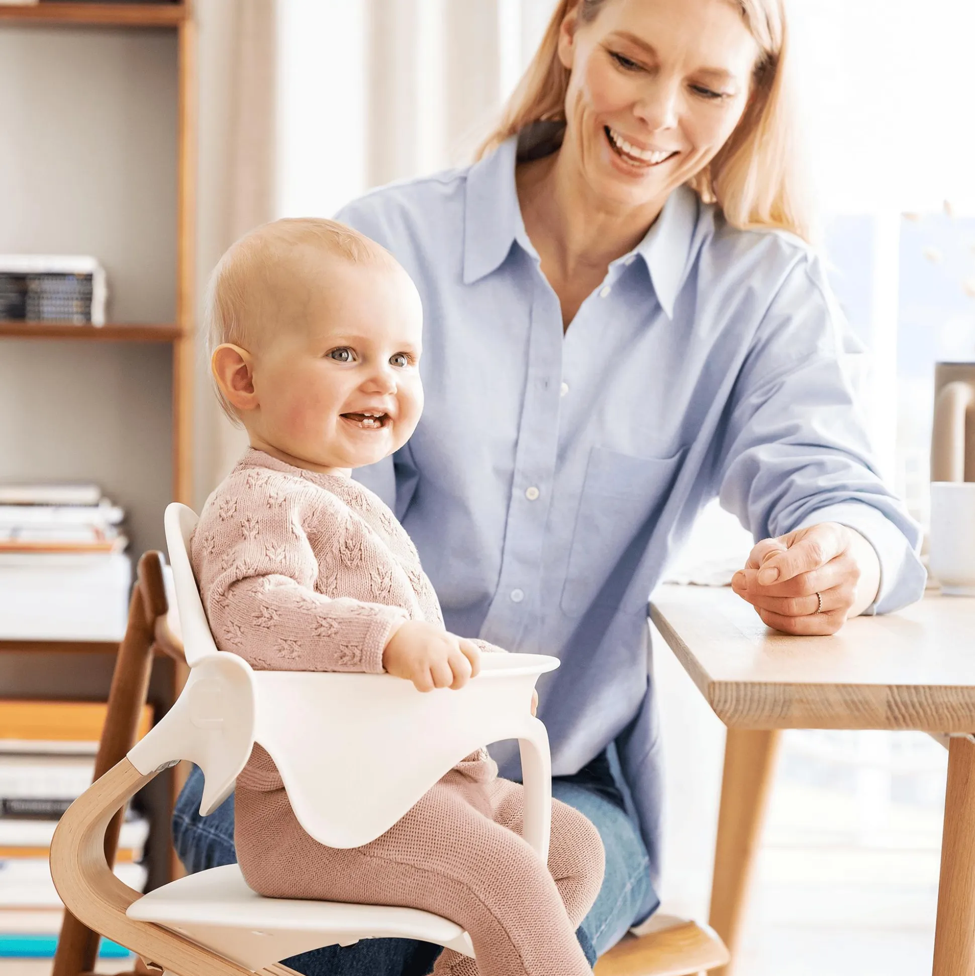 Das Stokke® Nomi® Baby Set bietet deinem Kind, ähnlich wie ein schützender Arm, Komfort und Halt, während es lernt, zu sitzen, wobei es sich trotzdem frei bewegen kann. Der einfach anzubringende Bügel rastet einfach ein, zuerst unter dem Sitz und dann an der Rückenlehne. Die abgerundeten organischen Konturen schaffen einen bequemen Hochstuhl mit uneingeschränkter Bewegungsfreiheit – ideal für die Entwicklung des Kleinkindes, wenn es am Familientisch entdeckt, probiert und interagiert.