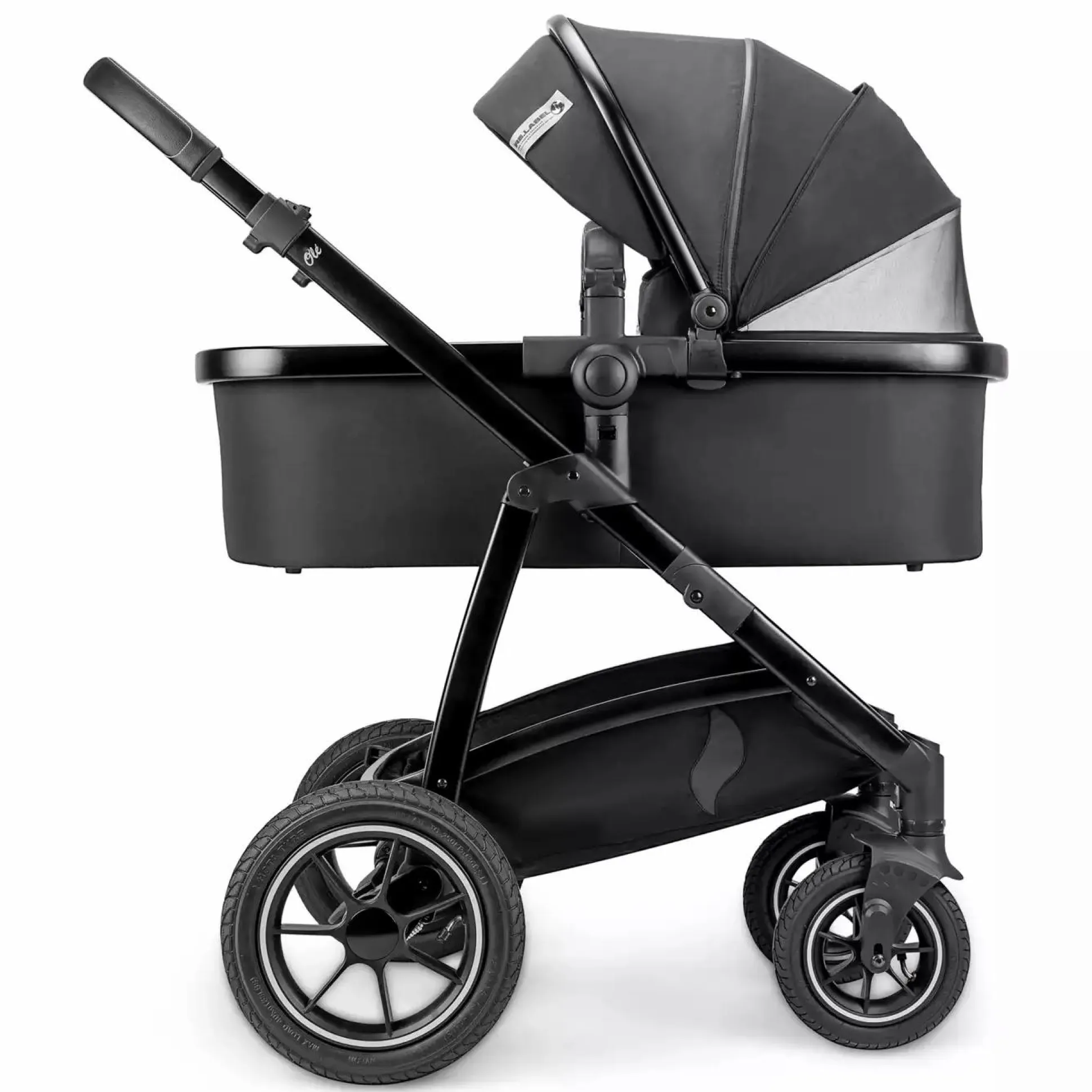 - optimiertes Finish: 3D Osann Flamme auf Babywanne und Sportsitz, maßgefertigte Ziernähte, Metall-Schieber mit Logo, nach innen verlegte Nieten am Rahmen, etc.