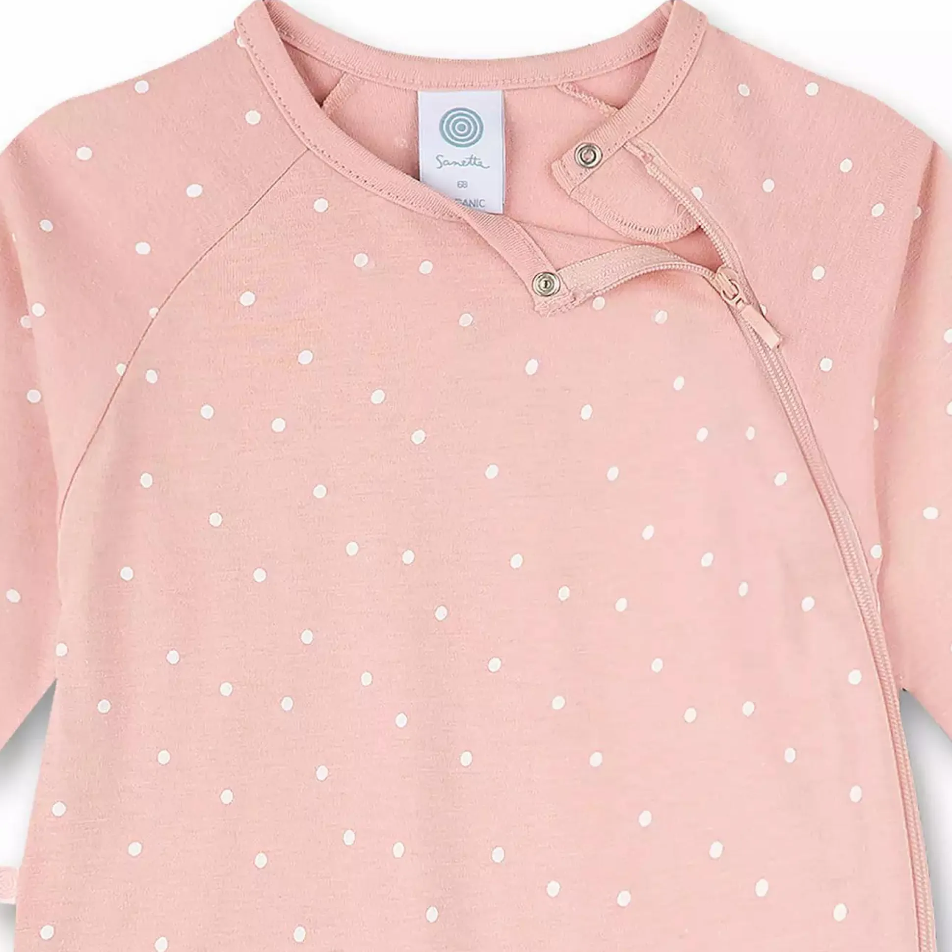 In dem kuscheligen Overall Punkte von Sanetta wird sich dein Kleines dank der reinen Bio-Baumwolle besonders wohl fühlen. Die umklappbaren Füße sind ein weiteres, komfortables Highlight, denn sie können bei Bedarf nach hinten weggeklappt oder an kälteren Nächten einfach über die kleinen Füßchen gezogen werden. Der durchgehende Reißverschluss erleichtert dir zudem das An- und Ausziehen. Verziert wird der Sanetta Overall mit einem wunderschönen Allover-Print aus Punkten.
