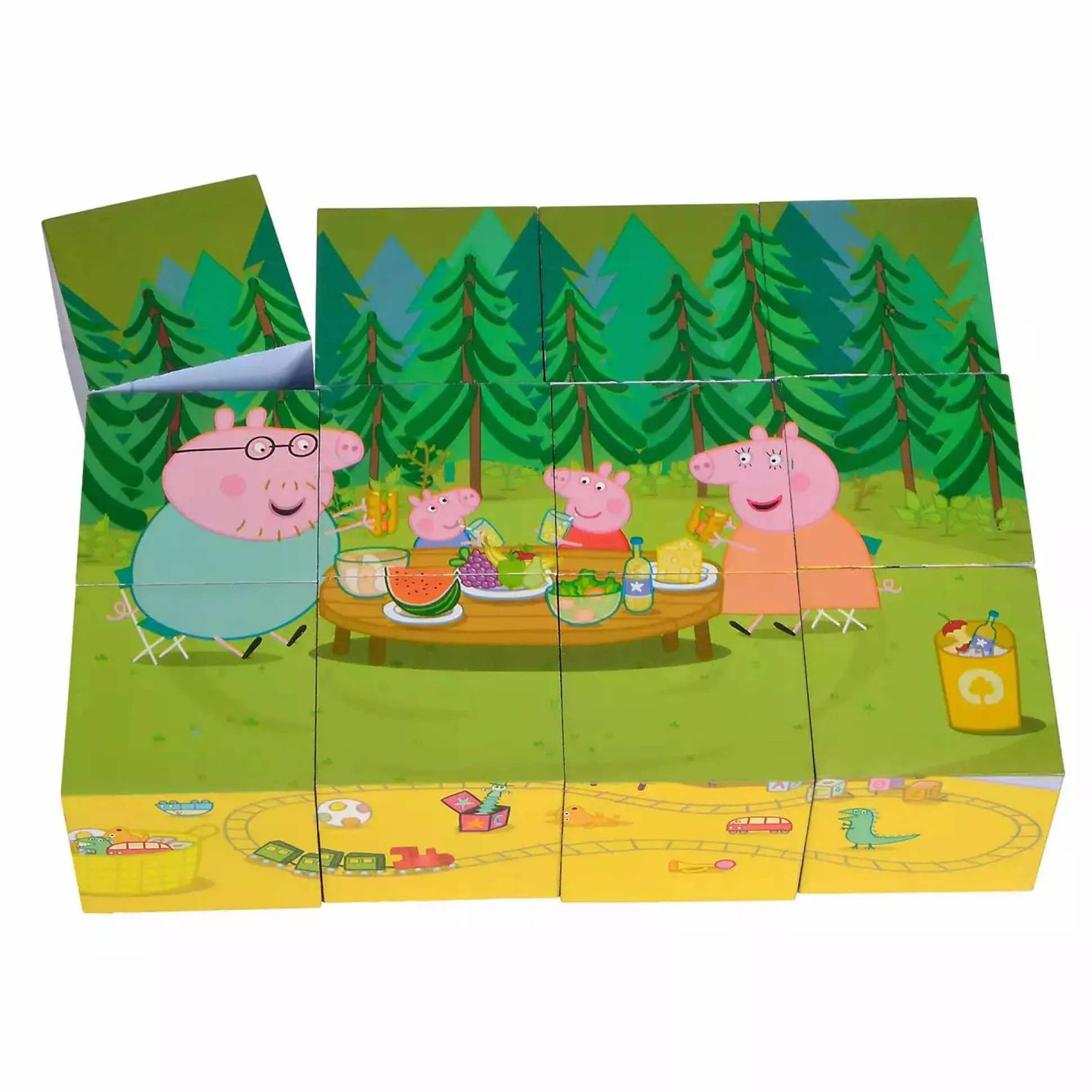 Die 12 farbigen Bilderwürfel von Simba mit sechs Motiven aus der wundervollen Welt von Peppa Pig werden deinem Kind ganz viel Spaß bereiten. Mit der Hilfe eines ausgebreiteten Motivbogens werden die Steine mit der richtigen Seite darübergelegt. Durch Umdrehen der Würfel ensteht ein neues Motiv, wie zum Beispiel ein Picknick im Wald oder mit der Familie am Strand. Für die Herstellung der Eichhorn Bilderwürfel wird ausschließlich FSC® 100% Holz aus vorbildlicher Forstwirtschaft verwendet. Die schönen Bilderwürfel sind ab ca. 3 Jahren geeignet und auch praktisch für unterwegs.