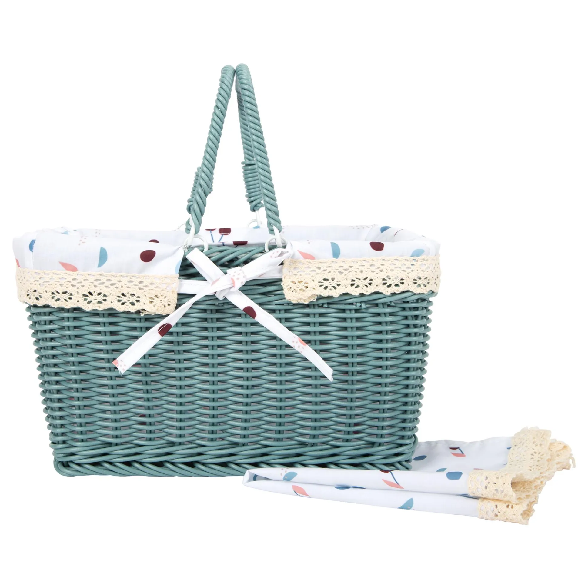 Dieser moderne Spiel-Picknickkorb von small foot ist ein absolutes Must-Have für dein Kind! Hergestellt aus robustem Korbgeflecht kommt er komplett mit Tellern, Bechern, Besteck und Lebensmitteln aus Holz für zwei Personen daher. Die klappbaren Tragegriffe und die passende Picknickdecke sind nicht nur praktisch, sondern auch ein toller Hingucker. Dieser Korb enthält zwei Schneide-Lebensmittel, eine Orange und ein Croissant, die durch einen Klettverschluss zusammengehalten werden.Die Innenverkleidung des Korbs ist abnehmbar und leicht zu reinigen, was ihn perfekt für Kinder ab ca. drei Jahren macht. Dieses Spielzeug fördert nicht nur die Entwicklung der Feinmotorik deines Kindes, sondern auch seine soziale Kompetenz und Alltagsfertigkeiten.