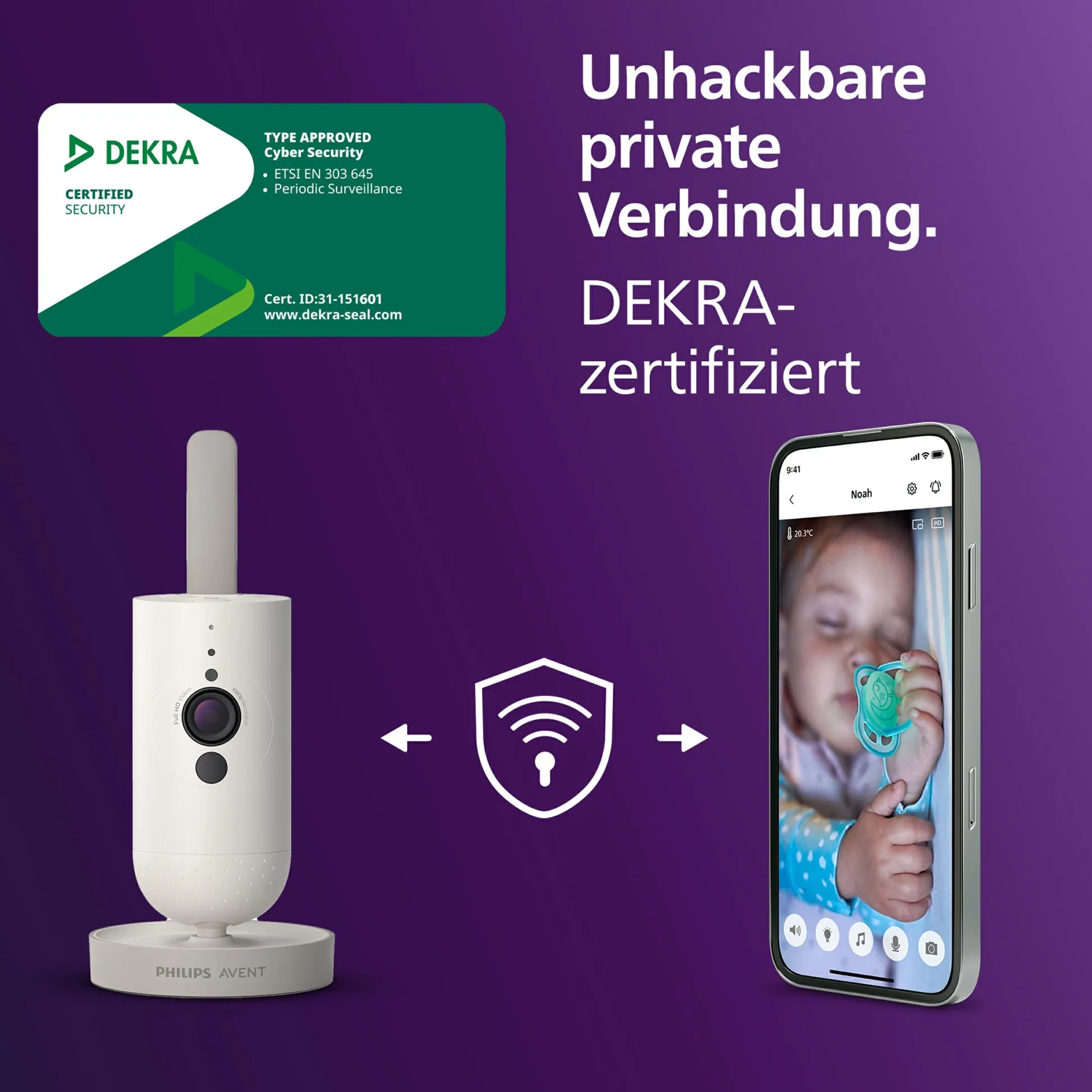 - verschlüsselte Verbindungen zwischen Babygerät, Elterneinheit und App dank Secure Connect System