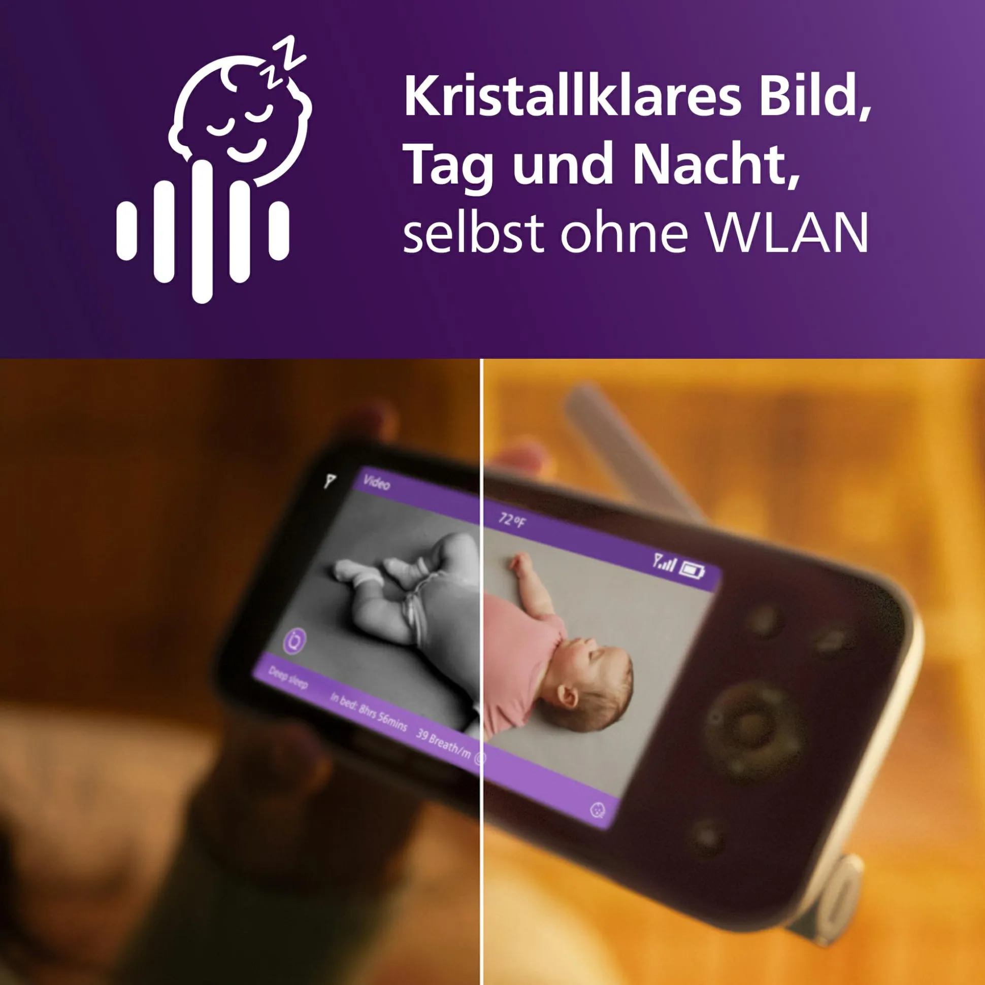 - Anzeige des Schlafstatus und der Atemfrequenz dank innovativer SenseIQ-Technologie