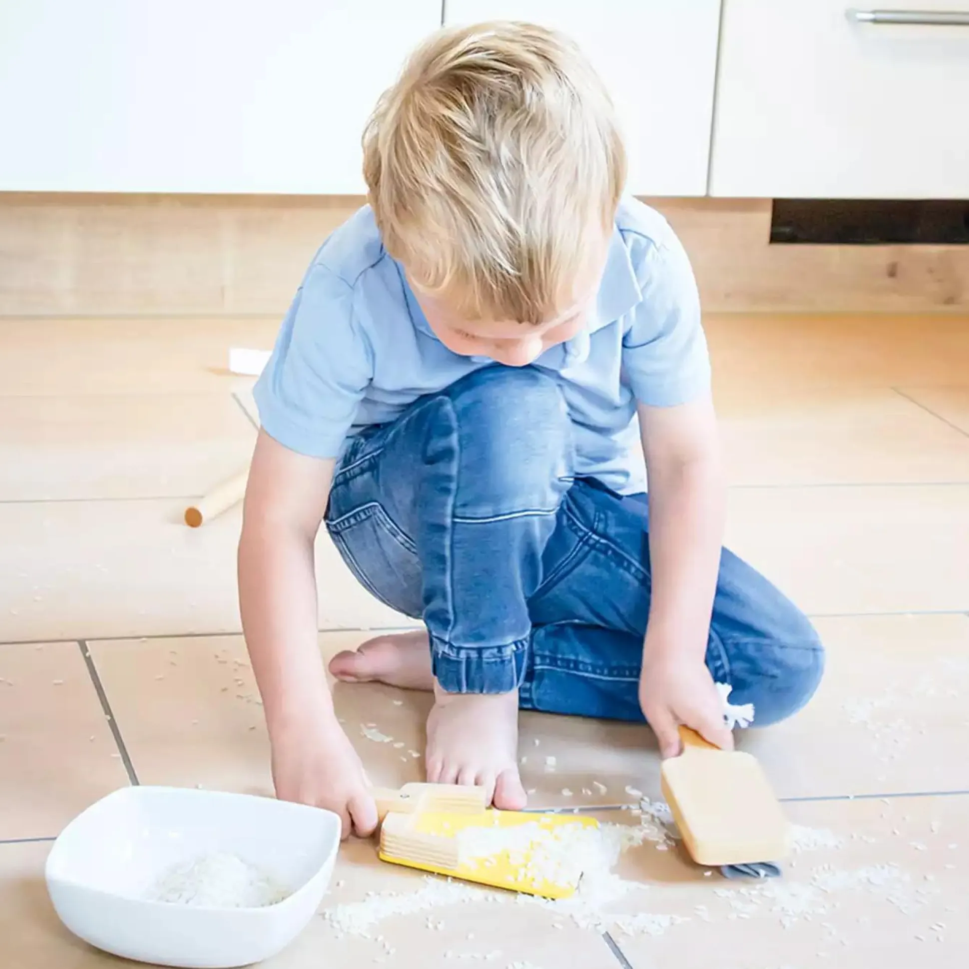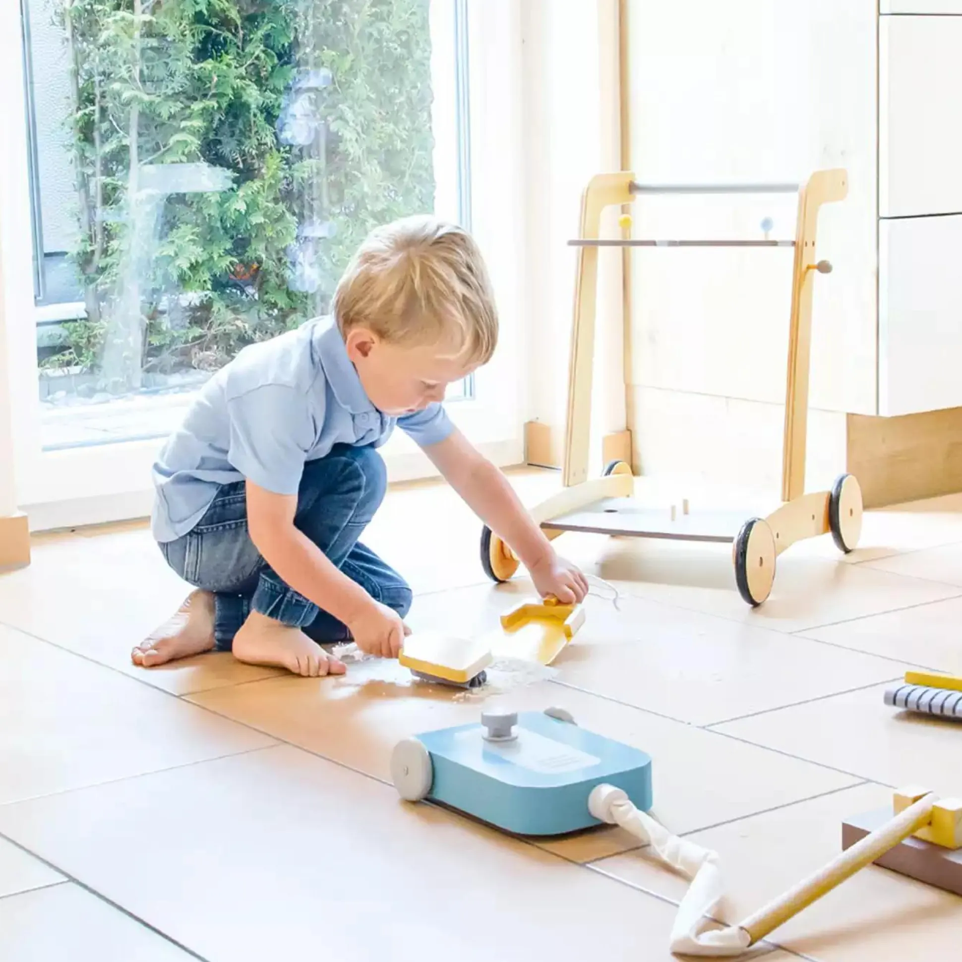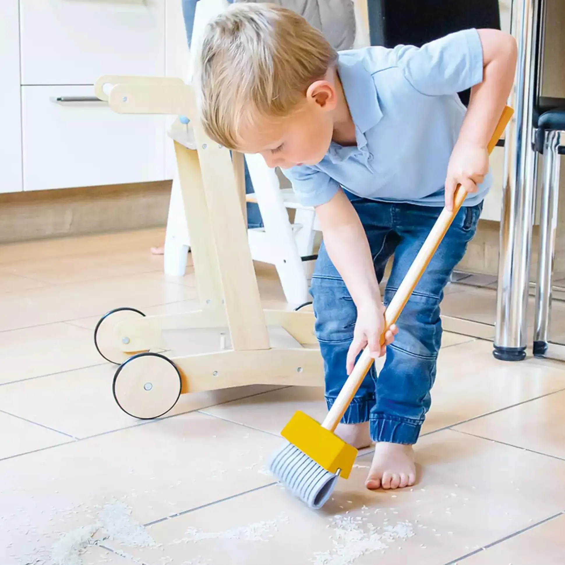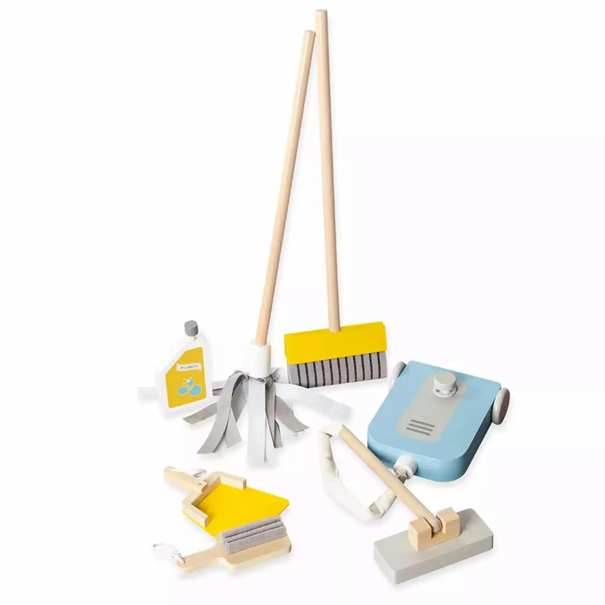 Der 7-teilige Putzwagen von Pinolino erleichtert deiner kleinen Hausfrau und Hausmann das Aufräumen und Putzen. Mit dem Wagen kann man zahlreiches Zubehör wie Staubsauger, Besen, Wischmop, Putzeimer und ein Kehrset mit Handfeger und Kehrblech sowie ein Reinigungsmittel transportieren. Dank der gummierten Holzräder wird auch der Boden bestens geschützt. Der Putzwagen ist für Kinder ab ca. 3 Jahren geeignet und leicht zu montieren.
