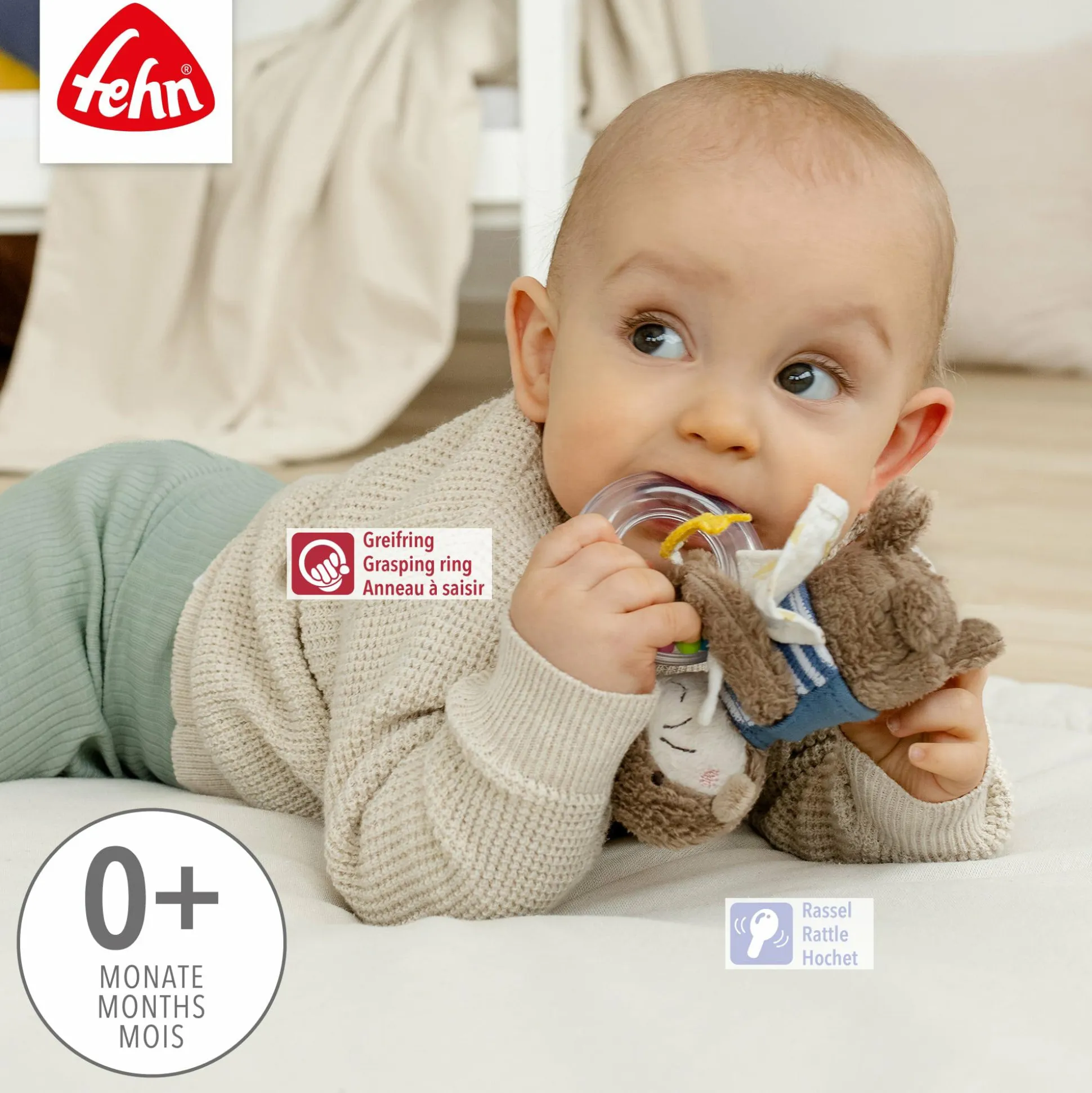 Der kleine Otter Theo von fehn macht mit seinem Rasselring auf sich aufmerksam. Mit den spannenden Geräuschen und den bunten Perlen animiert das Kuscheltier dein Baby zum Greifen, Rasseln und Spielen und fördert damit seine Feinmotorik. Dank seiner handlichen Größe kann die Rassel auch überall mit hingenommen werden.