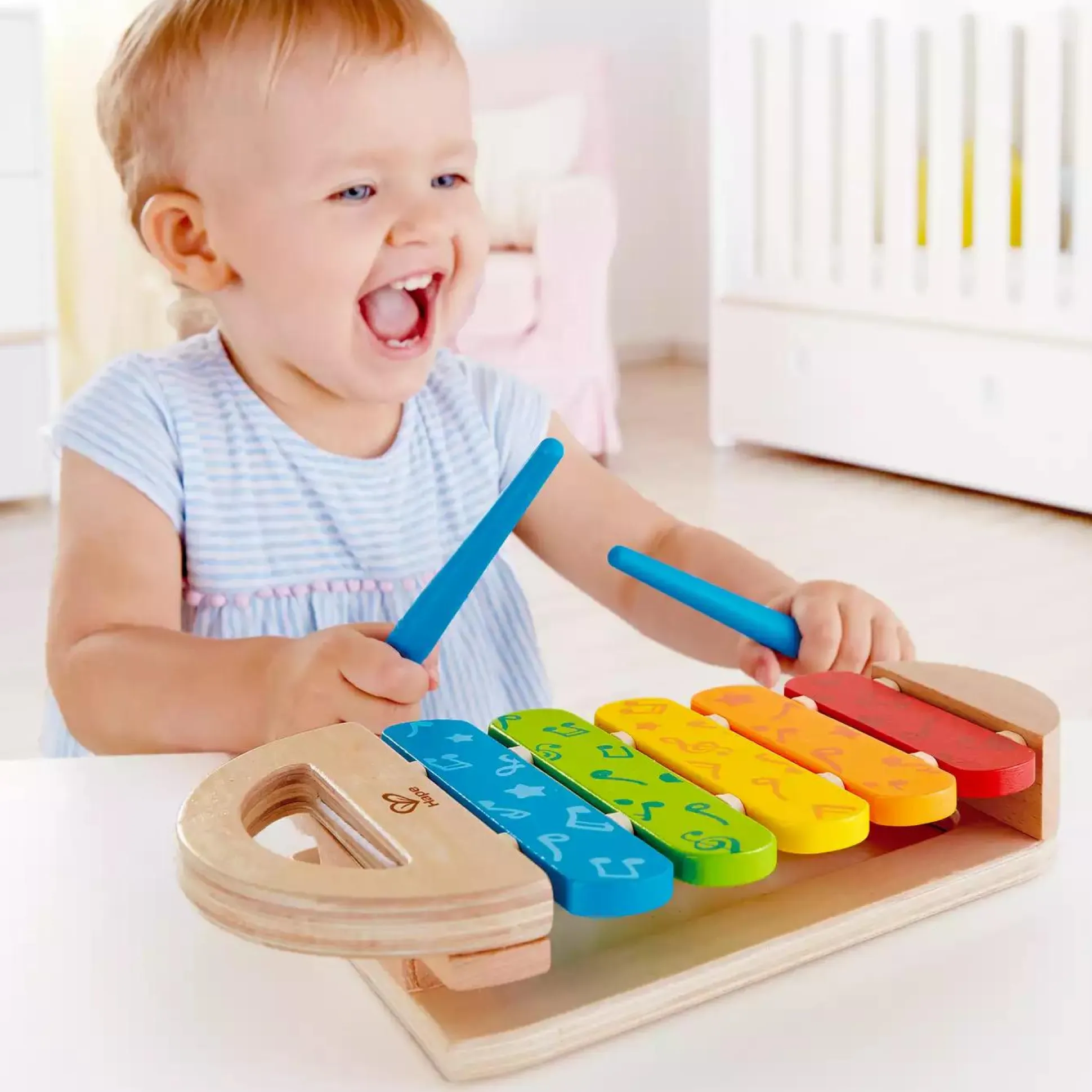 Das spaßige Regenbogen Xylophon von Hape lässt kleine Musiker in die Welt der Töne und Klänge eintauchen. Das musikalische Spielzeug besteht aus drei Teilen, dem Xylophon selbst und den zwei Schlägeln. Das Material des Instruments und der Schlägel ist Holz. Das Hape Regenbogen Xylophon eignet sich für Kinder ab ca. 12 Monaten und ist somit das ideale erste Musikinstrument.