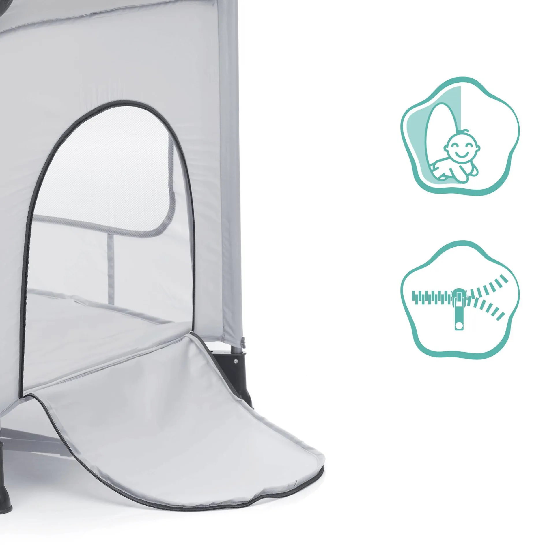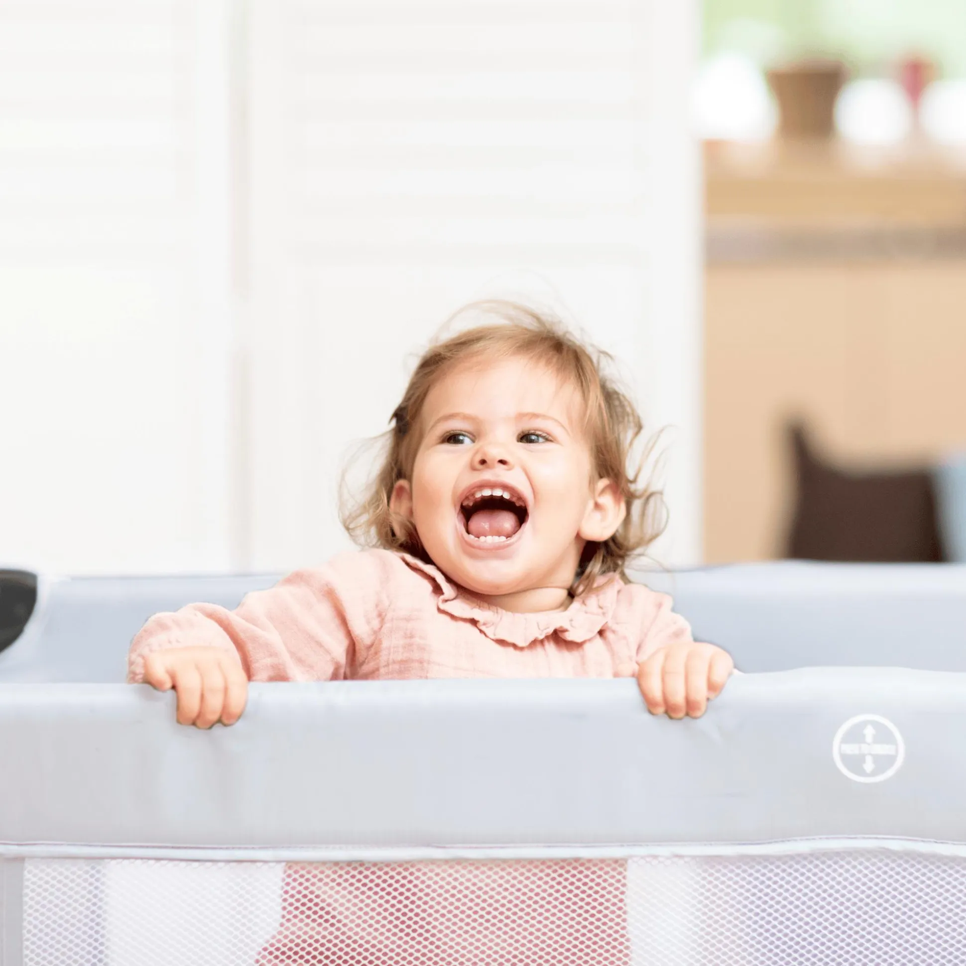 Zwei Seiten des Bettes sind mit luftdurchlässigem Netzgewebe versehen, damit dein kleiner Liebling sich nie eingeengt fühlt, während du ihn immer im Blick hast. Diese Netzwände garantieren nicht nur Komfort und Sicherheit, sondern auch eine frische Brise im Inneren. Die stabilen Standfüße verleihen dem Bett eine zuverlässige Basis und die mitgelieferte Matratze sorgt für festen Schlaf.Am schmalen Ende des Bettes befindet sich ein praktischer Schlupf, durch den dein Kind eigenständig in das Reich der Träume krabbeln kann. Der Reißverschluss öffnet und schließt diesen Schlupf mühelos. Ein kleines Nest für große Träume – das Reisebett Nizza begleitet euch überall hin.