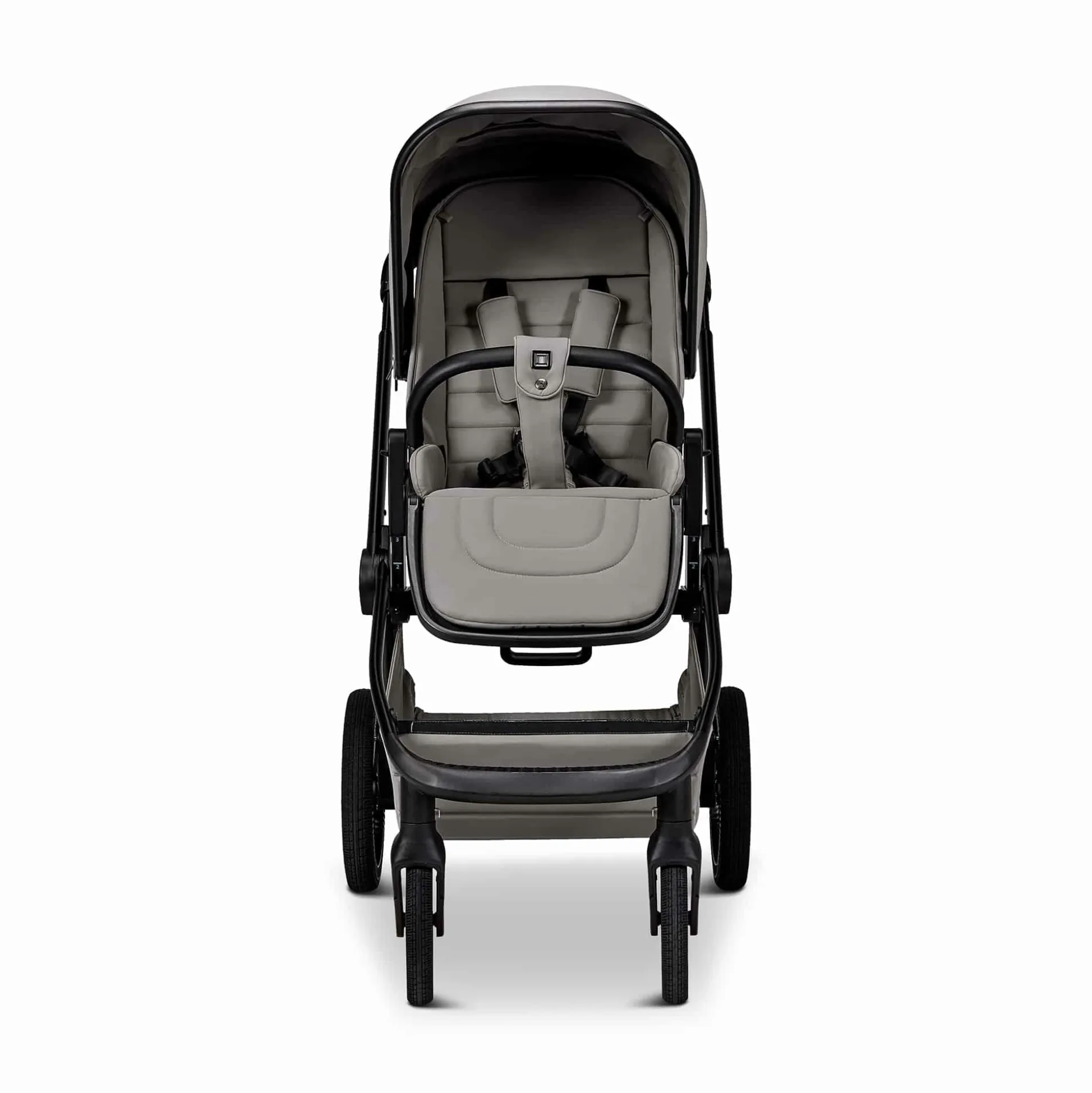 Sobald dein kleiner Schatz in den Sportsitz wechselt, wird es richtig bequem: Die ergonomische Liegeposition, das Komfortpolster und das 5-Punkt-Gurtsystem sorgen für Sicherheit und Gemütlichkeit. Der Sitz lässt sich dank Einhand-Faltmechanismus in beide Fahrtrichtungen zusammenfalten. Und mit dem XXL-Sonnenschutz samt Panorama-Fenster mit Klimazone kann die Sonne ruhig scheinen, während luftdurchlässige Materialien für ein angenehmes Klima sorgen.