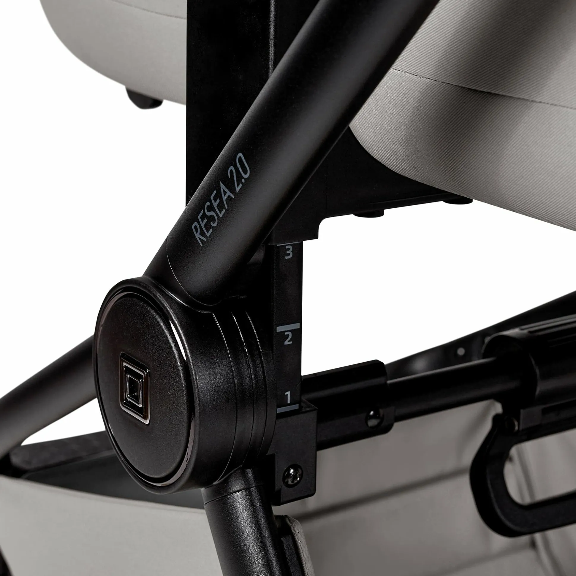 Auch an Bord sind jetzt die super leichten, stoßdämpfenden Lightweight-Räder. In Kombination mit einer Allrad-Federung und Kugellagern in der Reifen-Aufhängung gleitet der Resea 2.0 sanft über Kopfsteinpflaster, Wiesen und Stadtwege. Und für größere Geschwister gibt es jetzt sogar ein integriertes, rutschfestes Trittbrett. Mit den neuen Safety Stickern (Reflektoren) seid ihr auch im Dunkeln gut sichtbar.