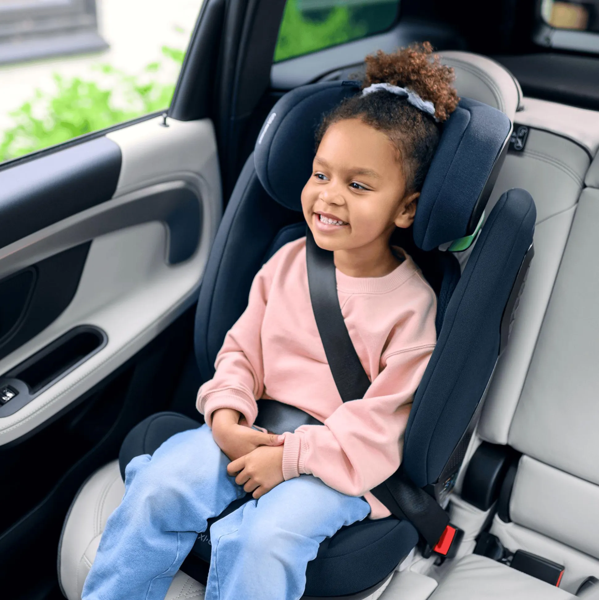 - Befestigung im Fahrzeug per Fahrzeuggurt – und zusätzlich optional per ISOFIX