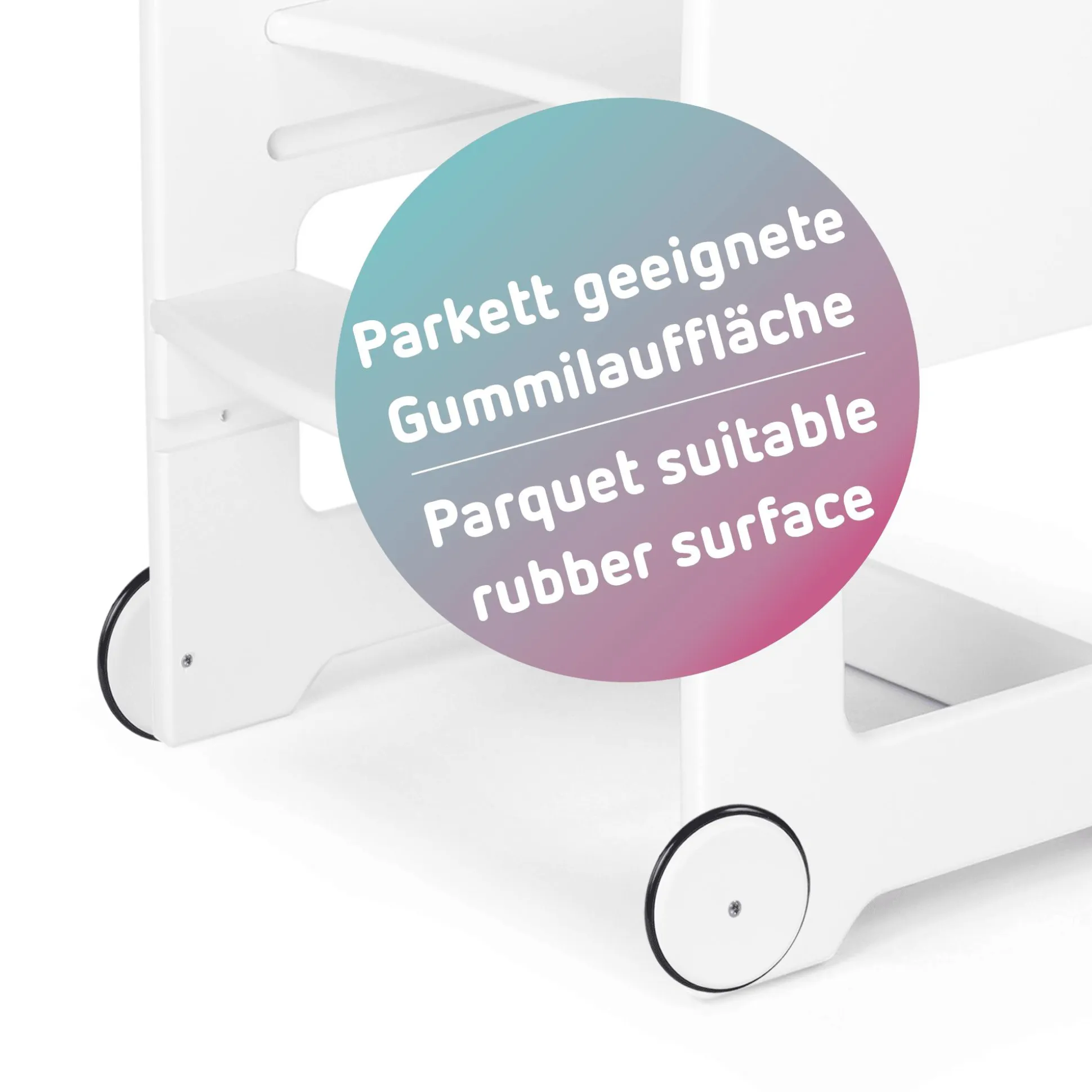 Der babybay® Rollensatz für den Lernturm Littlefoot® ist das ideale Zubehör, um deinen babybay® Lernturm Littlefoot® noch vielseitiger und mobiler zu machen. Trotz der leicht umsetzbaren Beweglichkeit behält der Lernturm seine gewohnte Stabilität und ist jederzeit standsicher – die Rollen lassen den Lernturm nur rollen, wenn er bewusst nach hinten geneigt wird, was einen sicheren Stand gewährleistet.Egal, ob in der Küche, im Badezimmer oder am Wohnzimmertisch, mit diesen Rollen ist dein Lernturm immer dort, wo ihr ihn braucht.Die Montage der Rollen ist einfach und schnell erledigt. Die Rollen sind mit einer parkettgeeigneten vollgummierten Lauffläche ausgestattet, die ein sanftes Gleiten und einen sicheren Stand auf verschiedensten Böden gewährleistet..Die Räder sind aus massivem heimischen Buchenholz gefertigt und gemäß der Norm DIN EN 71-3 lackiert, was höchste Sicherheitsstandards für dein Kind garantiert.Mit dem Rollensatz Littlefoot® wird nicht nur die Funktionalität deines babybay® Lernturm Littlefoot® erweitert, sondern auch seine Flexibilität im Alltag erhöht. Sie bieten eine praktische Lösung, um das Lernen und Spielen deines kleinen Lieblings überall im Haus zu unterstützen, ohne Kompromisse bei der Standsicherheit oder Mobilität machen zu müssen.
