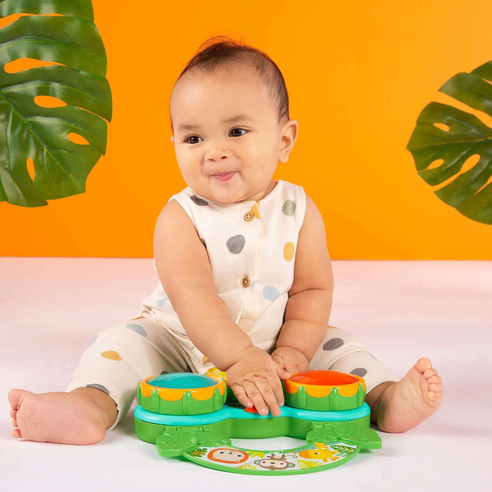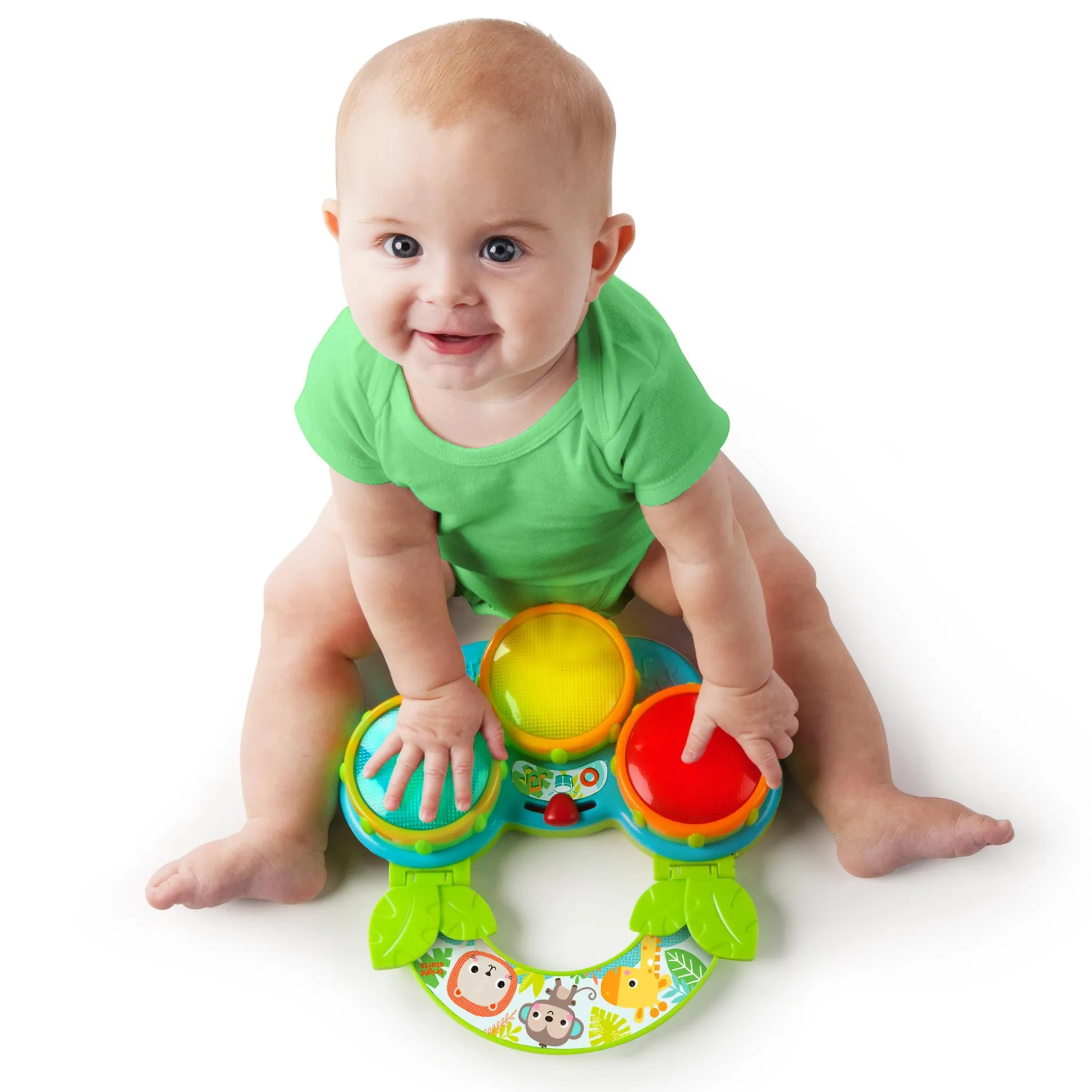 Das Safari Beats Musikspielzeug von Bright Starts ist ein unterhaltsames und interaktives Spielzeug, das deinen Nachwuchs ab ca. drei Monaten in die Welt der Musik entführt. Mit seinen drei bunten Trommeln bietet es endlose Stunden voller Spaß, Musik und Entdeckungen.Die Trommeln des Musikspielzeugs sind nicht nur farbenfroh, sondern spielen auch eine Vielzahl von Liedern, Geräuschen und erzeugen bunte Lichter. Dein Kind kann herumtrommeln und dabei verschiedene Rhythmen und Melodien erkunden.