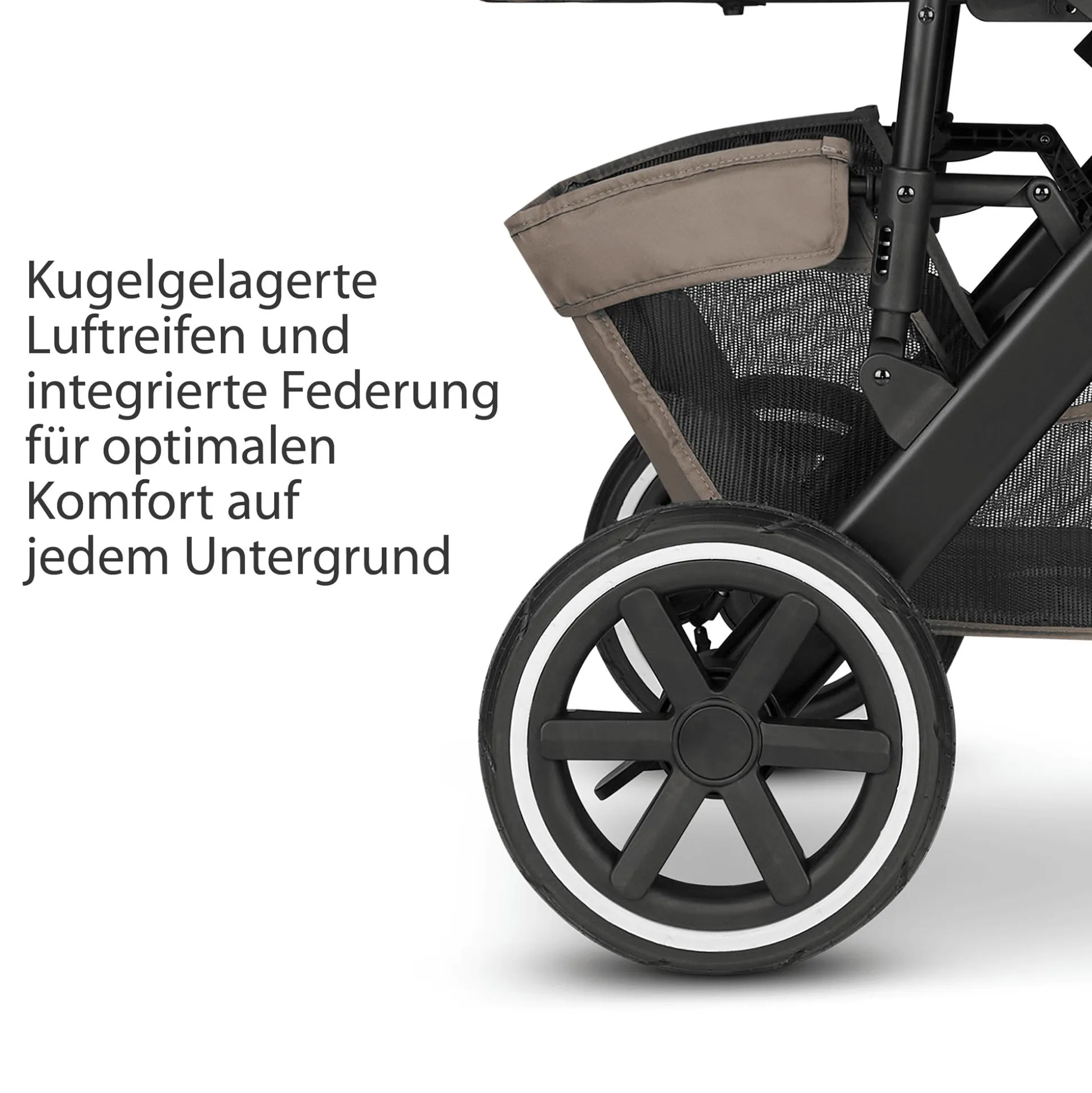 - Luftreifen, Kugellager und Radfederung für komfortable Laufruhe
