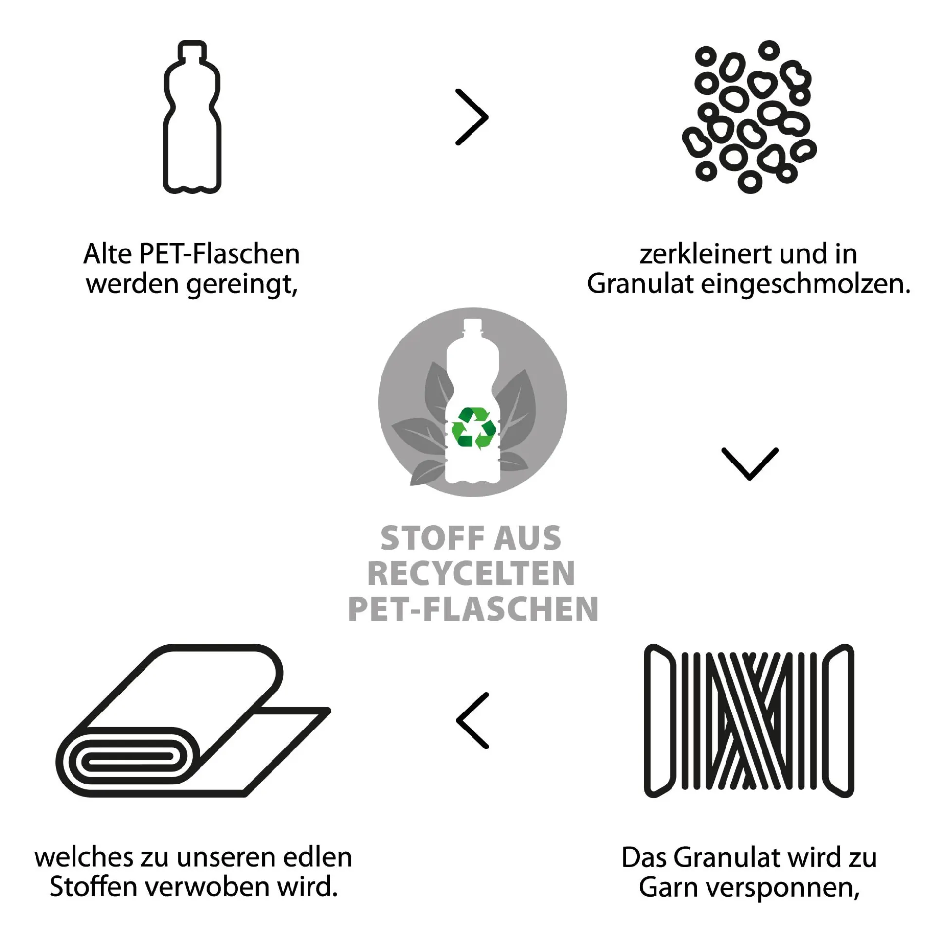- nachhaltig: Stoffe aus recycelten PET-Flaschen