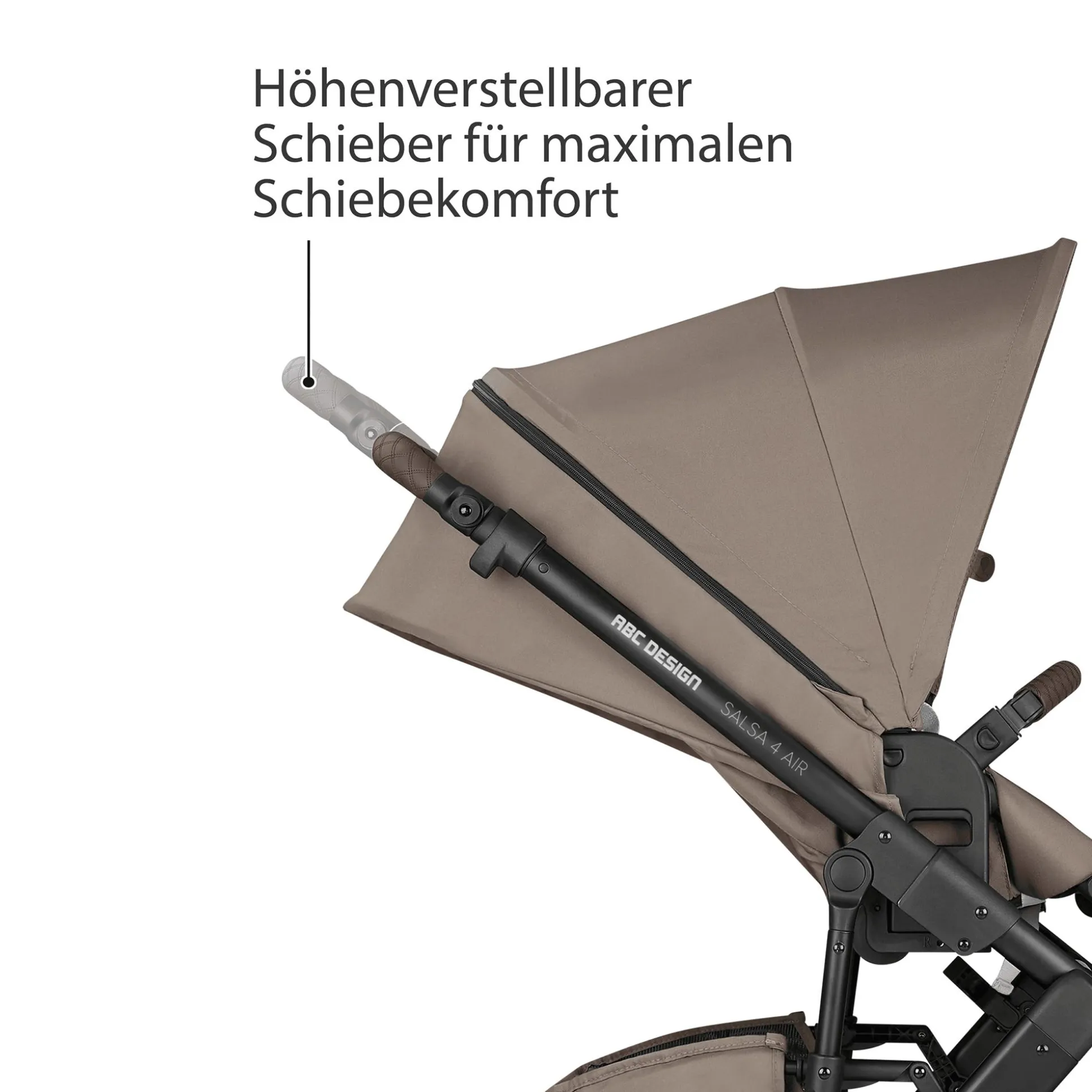 Auch für dich bietet der Salsa 4 Air ein Maximum an Komfort: Zum Beispiel lässt sich der höhenverstellbare Schieber individuell auf deine Größe einstellen, so dass – neben müheloser Lenkbarkeit – ein rückenschonendes Schieben garantiert ist.