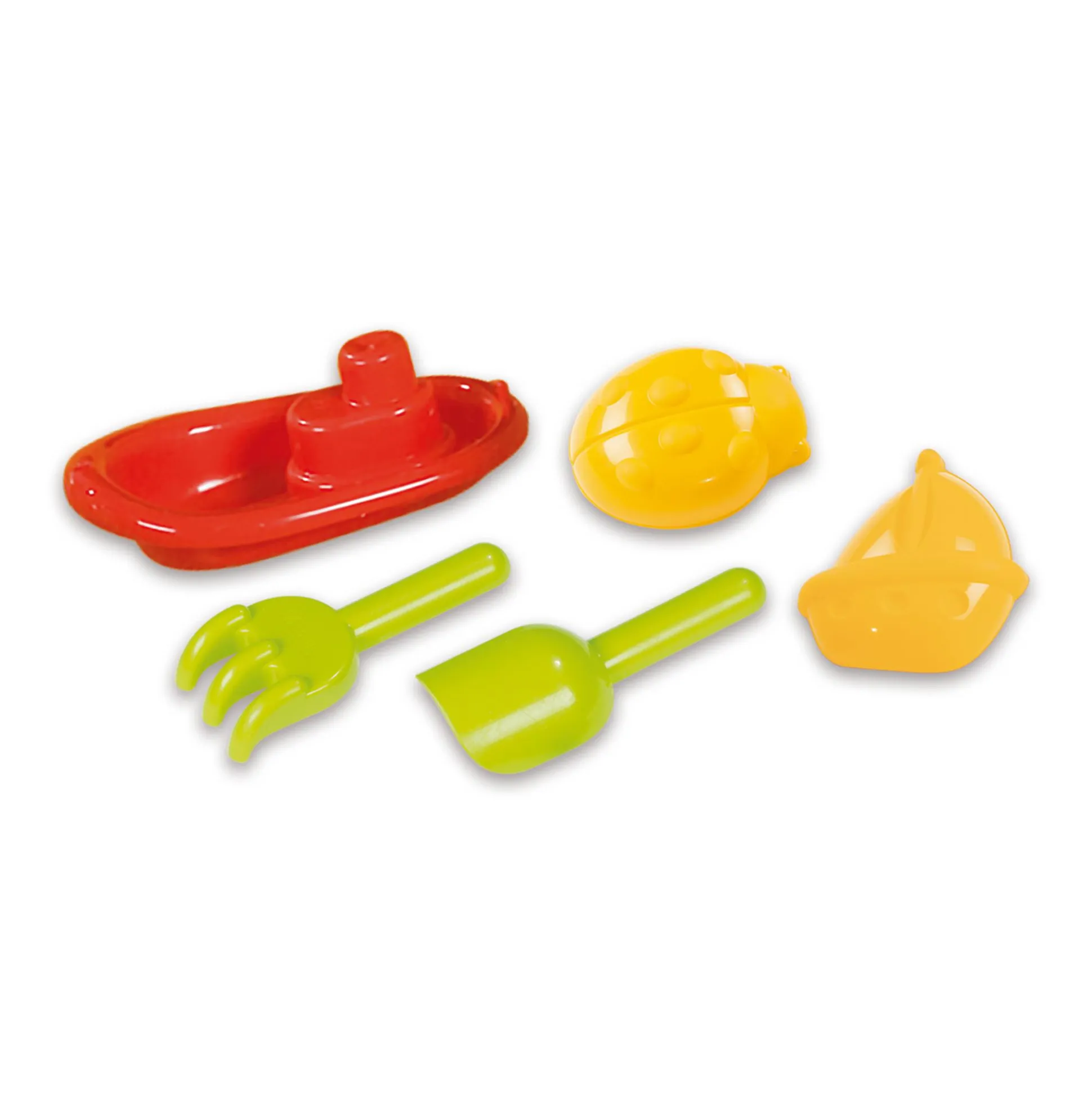 - inkl. viel Sand- und Wasserspielzeug: Sandförmchen, Harke, Schaufel und Spielzeugboot