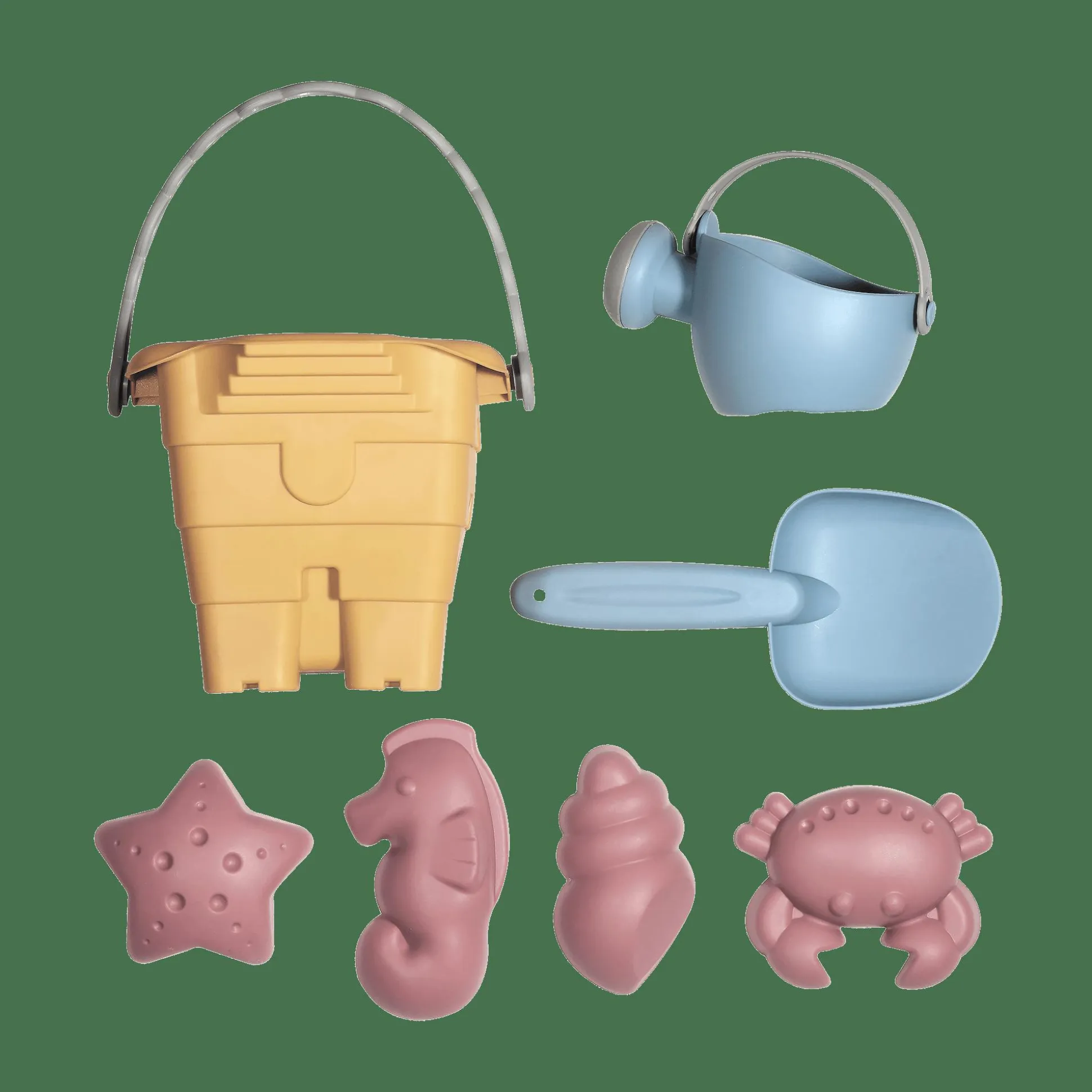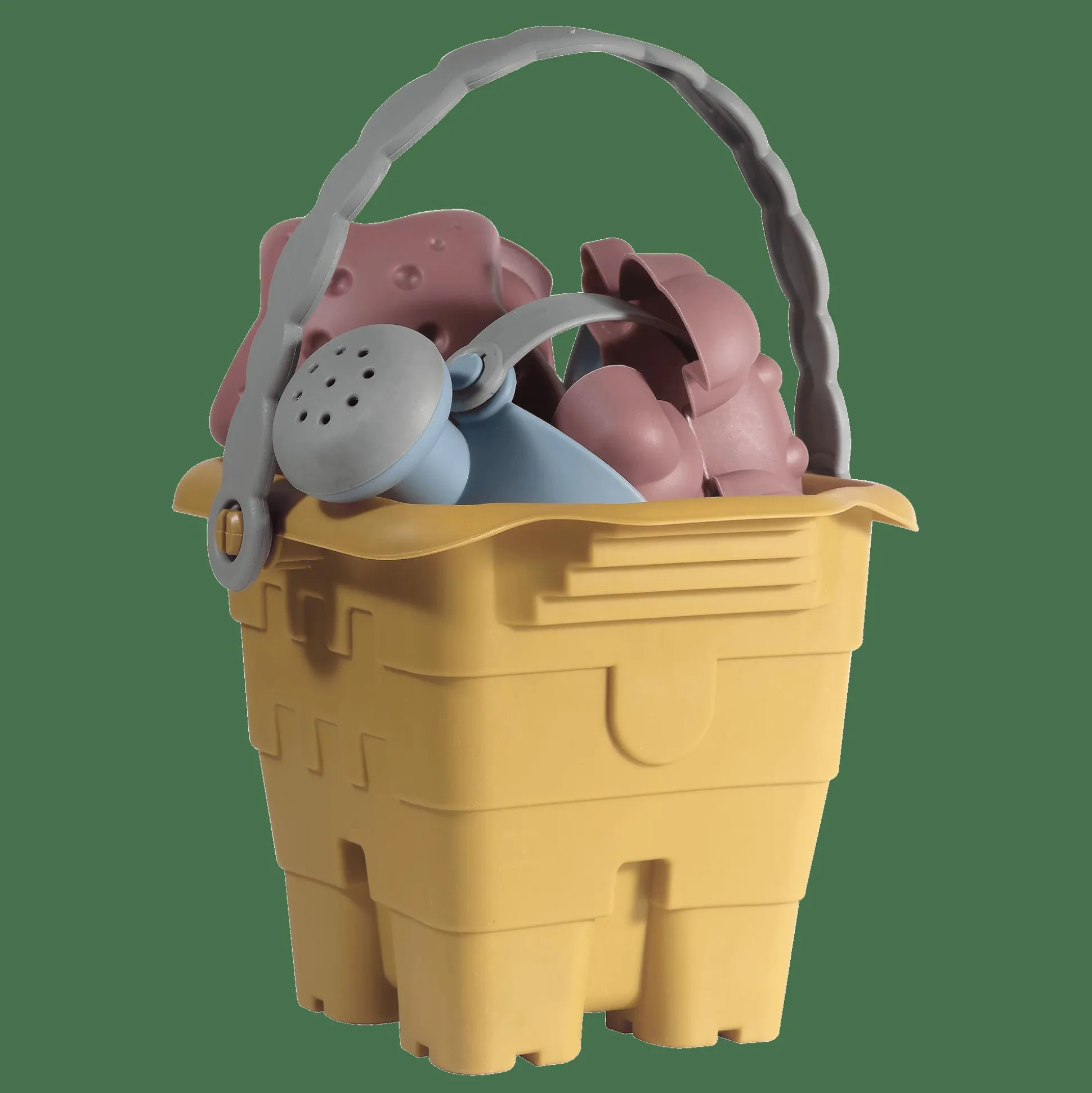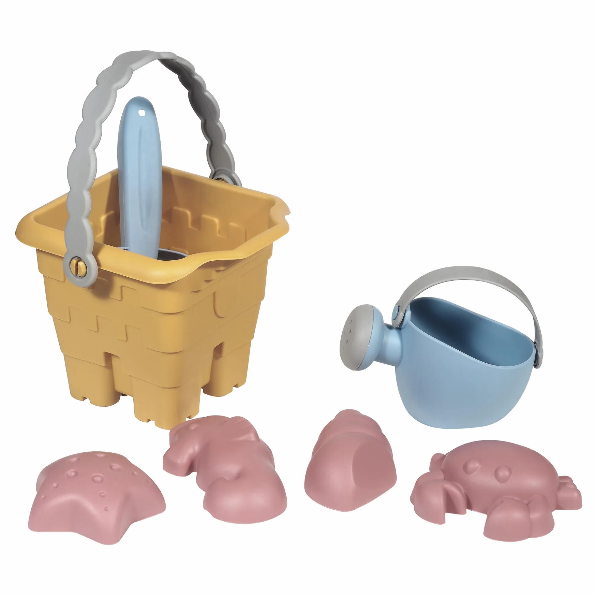 - Set bestehend aus 1 Eimer, 1 Gießkanne, 1 Schippe und 4 Förmchen