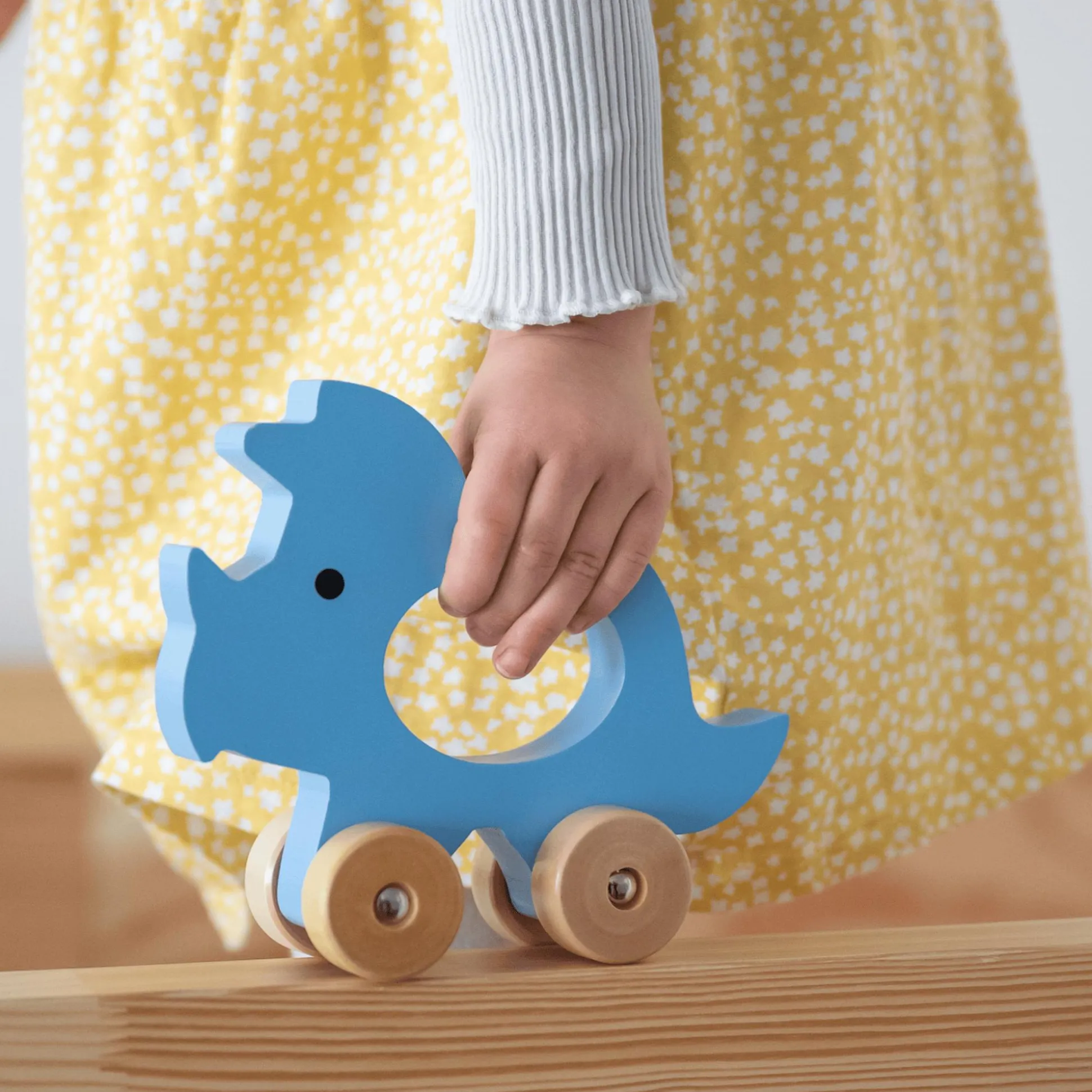 - der Dino kann gezogen, geschoben und kreativ ins freie Spiel eingebunden werden und ist so ein tolles Lernspielzeug für die Kleinen