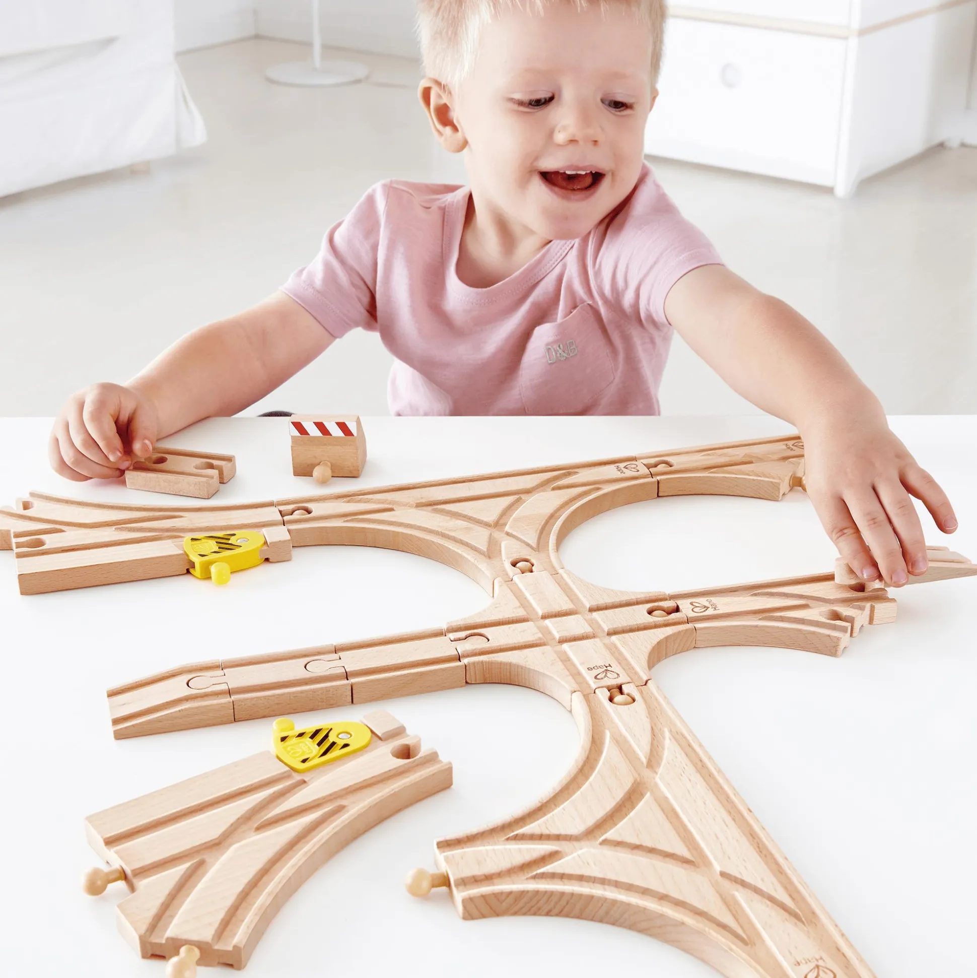 Das Schienen-Erweiterungs-Set von Hape ist die perfekte Ergänzung für kleine Eisenbahnliebhaberinnen und -liebhaber! Mit den 14 enthaltenen Teilen – darunter T-Kreuzungen, Weichen und eine Kreuzung – kann dein Schätzchen seine Traumstrecke ganz nach seinen Vorstellungen gestalten.Die gelben Schalter an den langen Weichen ermöglichen es, spielerisch Abstellgleise zu öffnen und zu schließen. So wird die Welt der Eisenbahn noch vielseitiger und spannender!Dieses Set fördert die Kreativität und regt die Fantasie deines Kindes an, während es spannende neue Strecken plant und ausprobiert. Ein Must-have für alle, die ihre Eisenbahn-Abenteuer auf das nächste Level bringen wollen!