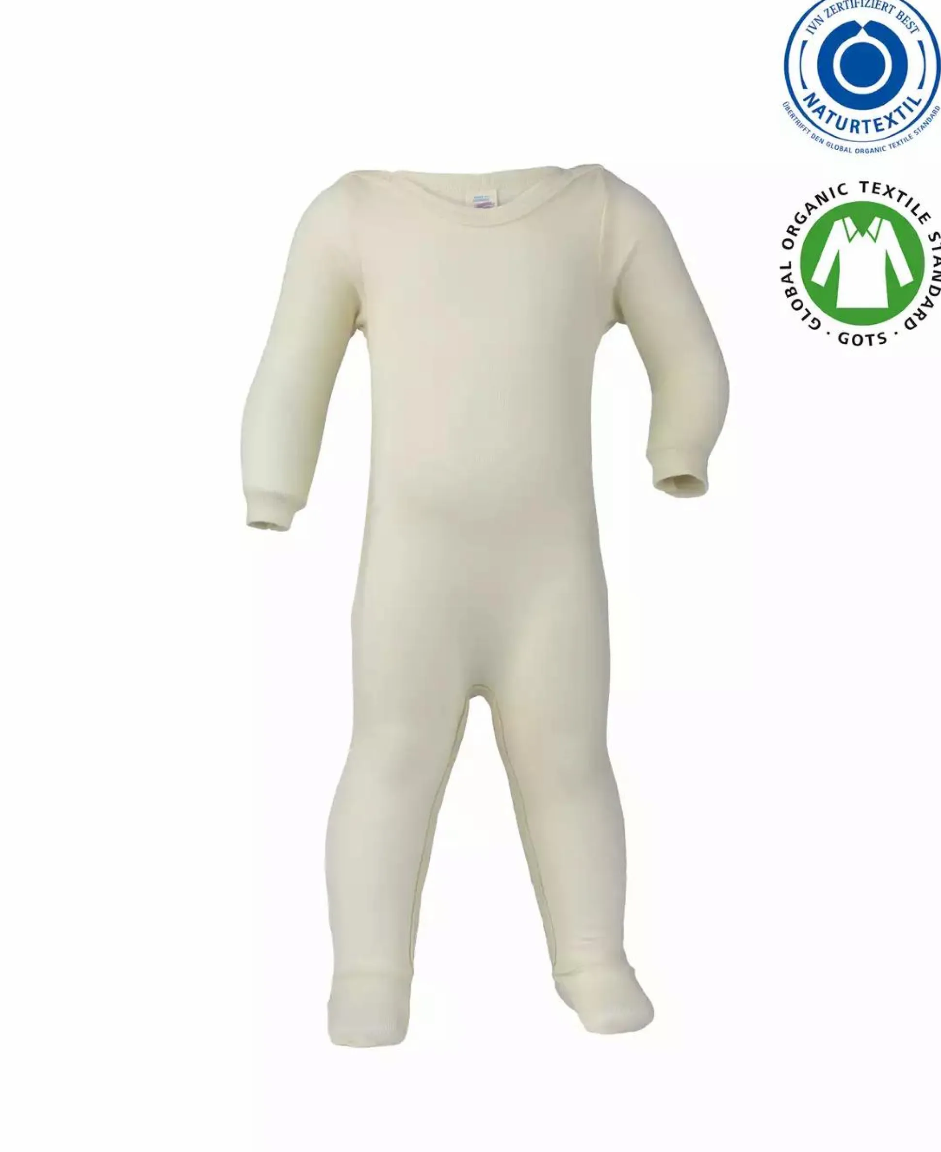 - Feinripp Schlafoverall mit langen Ärmeln aus 70% Merinoschurwolle aus kontrolliert biologischer Tierhaltung und 30% Seide