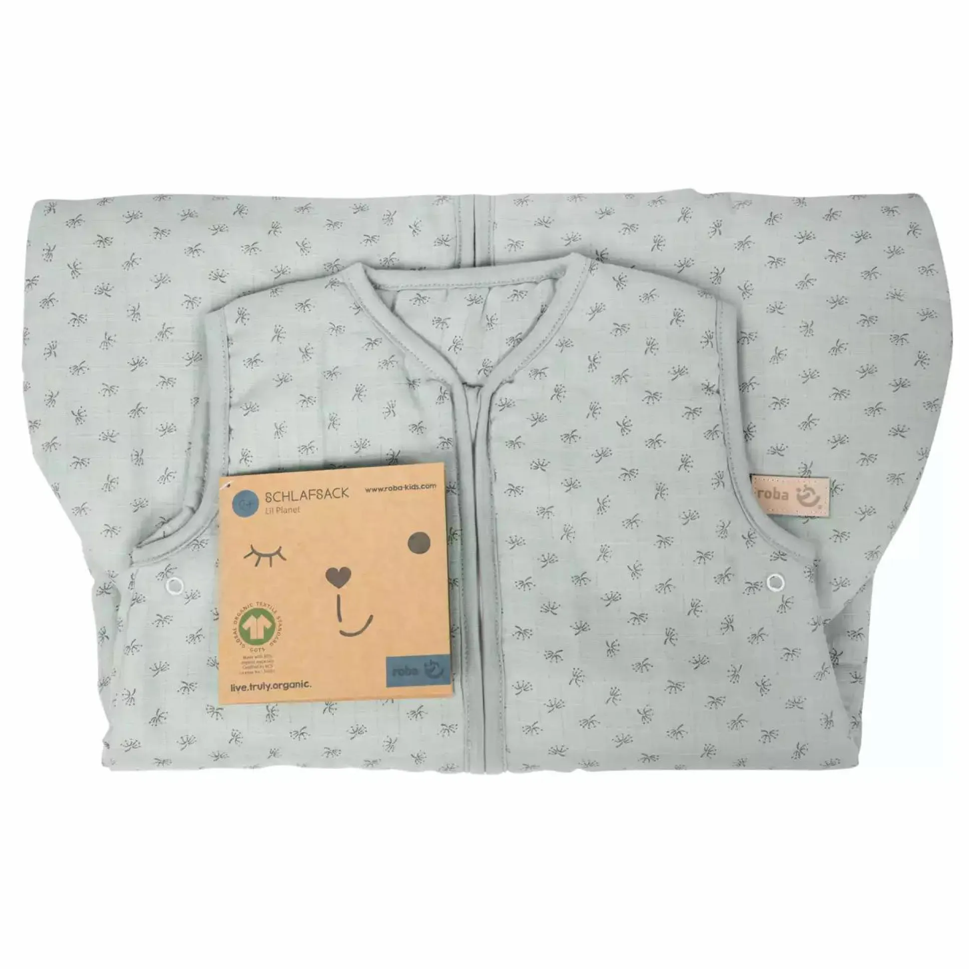 Der Schlafsack von Roba aus der „Lil Planet“ Kollektion ist aus hautfreundlichem, schadstofffreien und wasseraufnehmenden Musselin-Stoff aus 100 % Baumwolle gefertigt, und sorgt somit für ein kuscheliges und trockenes Gefühl im Babybett. Außerdem beugt der Schlafsack aufgrund seines atmungsaktiven und extraweichen Materials vor Überhitzung deines Babys vor. Er behält auch nach vielen Wäschen ihre Form und ihre angenehme Haptik. Dank der speziellen Oberflächenbehandlung bleiben die Roba Schlafsäcke superweich. Ein langer Reißverschluss erleichtert zudem das An- und Ausziehen.