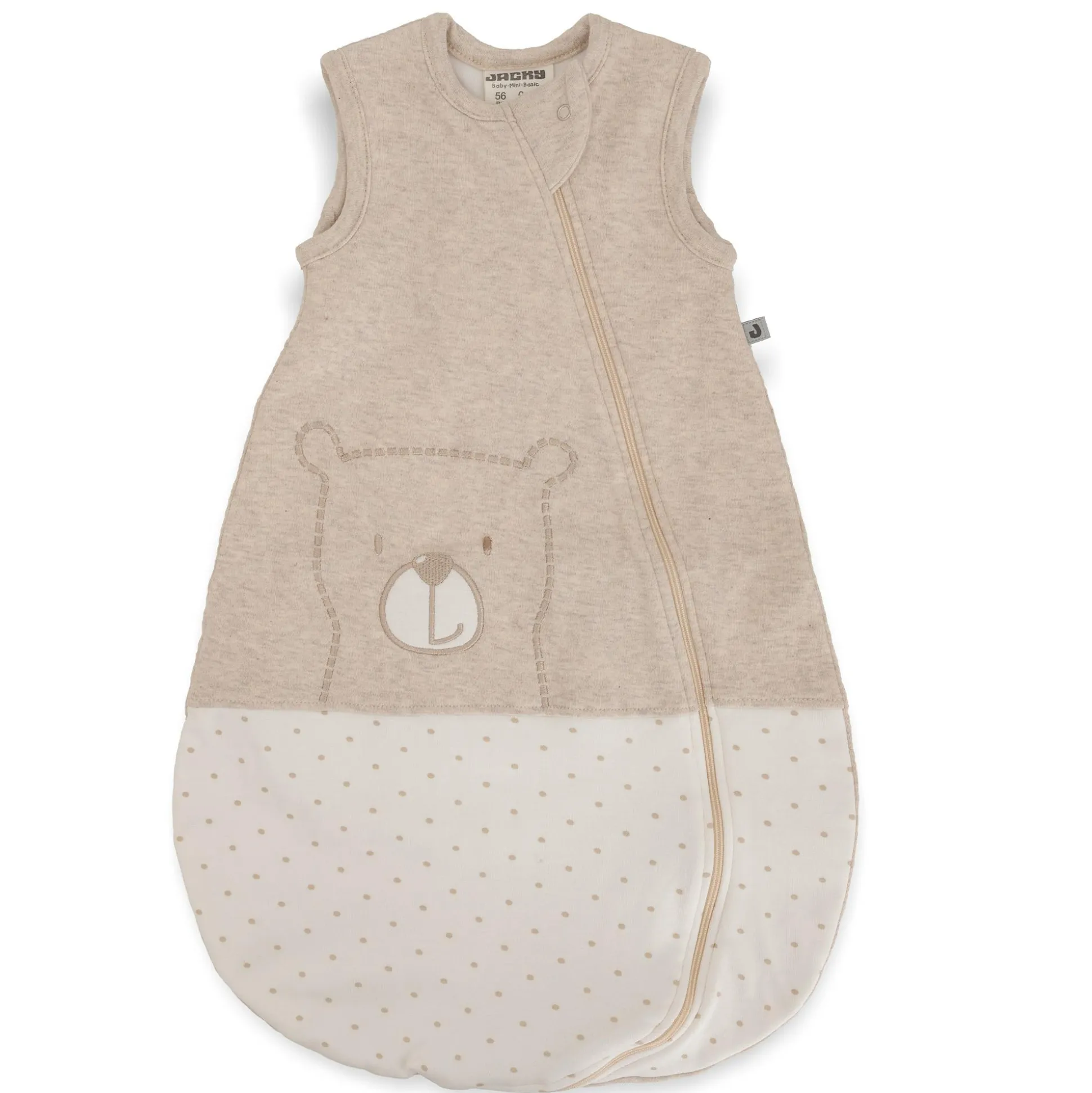 Der Schlafsack für Babys von Jacky ist die ideale Wahl für eine erholsame Nacht deines Babys. Mit seiner bezaubernden Bär-Stickerei wird er sicherlich das Herz deines kleinen Lieblings erobern und süße Träume begleiten. Er besteht zu 100% aus Baumwolle und bietet so eine angenehme und atmungsaktive Umgebung, die für die zarte Haut deines Babys geeignet ist. Dabei sorgt das ungefütterte Design für eine natürliche Temperaturregulierung und Komfort während des Schlafes, ohne, dass dein Liebling schwitzt.