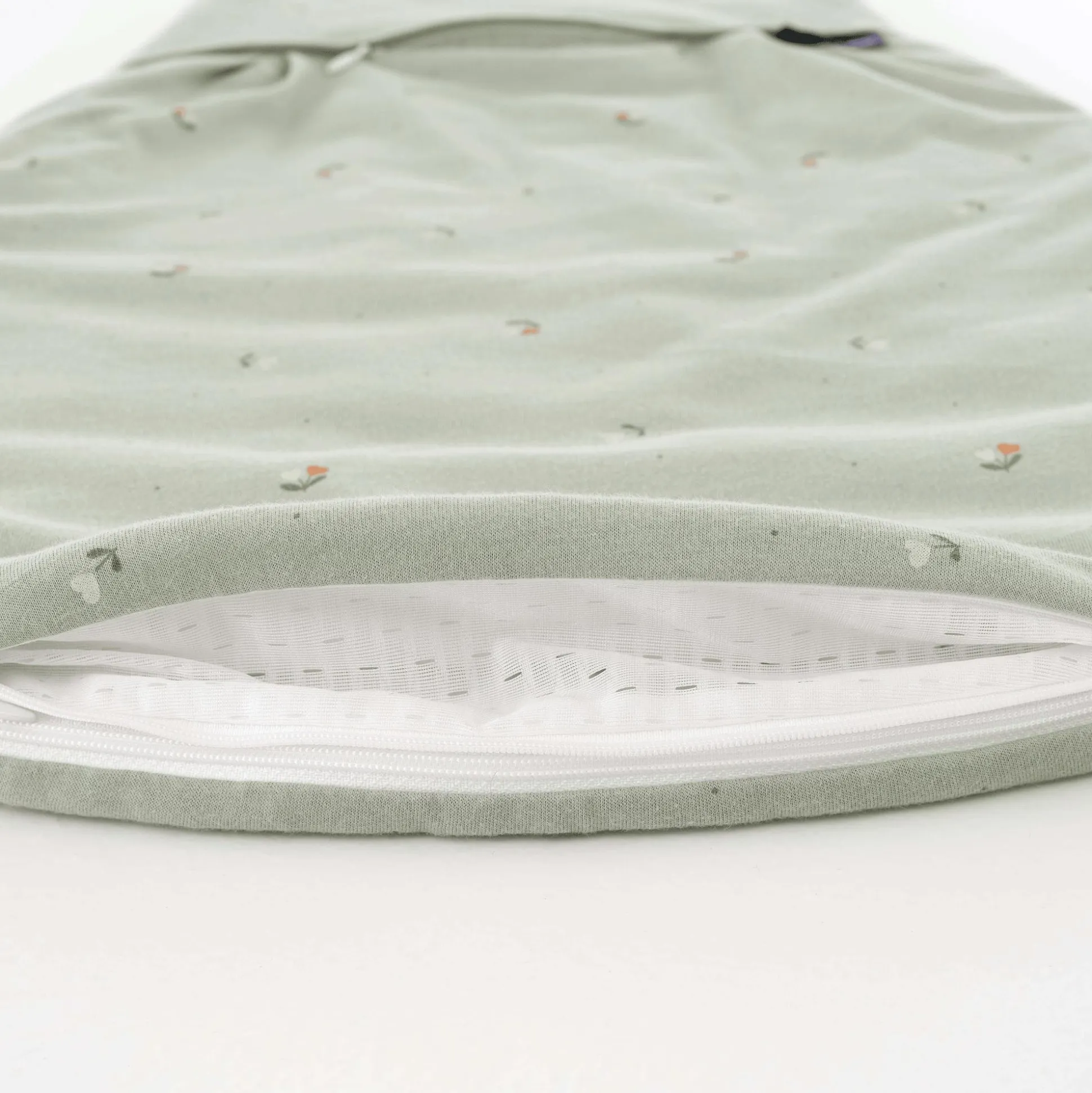 - 2 Belüftungsschlitze am Schlafsack können durch Reißverschlüsse geöffnet werden und ermöglichen eine optimale Luftzufuhr je nach Bedarf, innerhalb von 5 Minuten reduziert sich so die Temperatur um bis zu 3°C – einer Überwärmung des Babys wird so entgegengewirkt