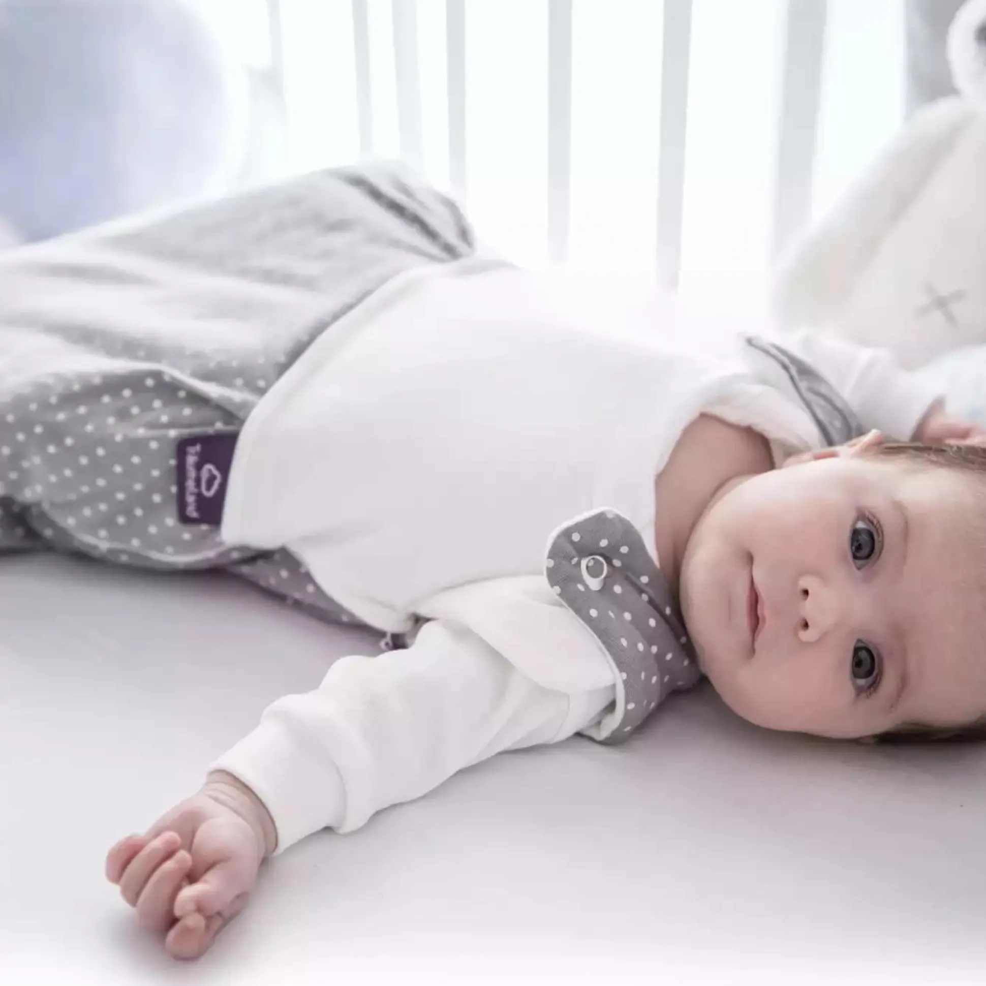 Das Träumeland Schlafsack-Set LIEBMICH im frechen Punktedesign besteht aus einem Schlafsack und zwei passenden Innensäcken und bietet dem Baby die optimale Strampelfreiheit.