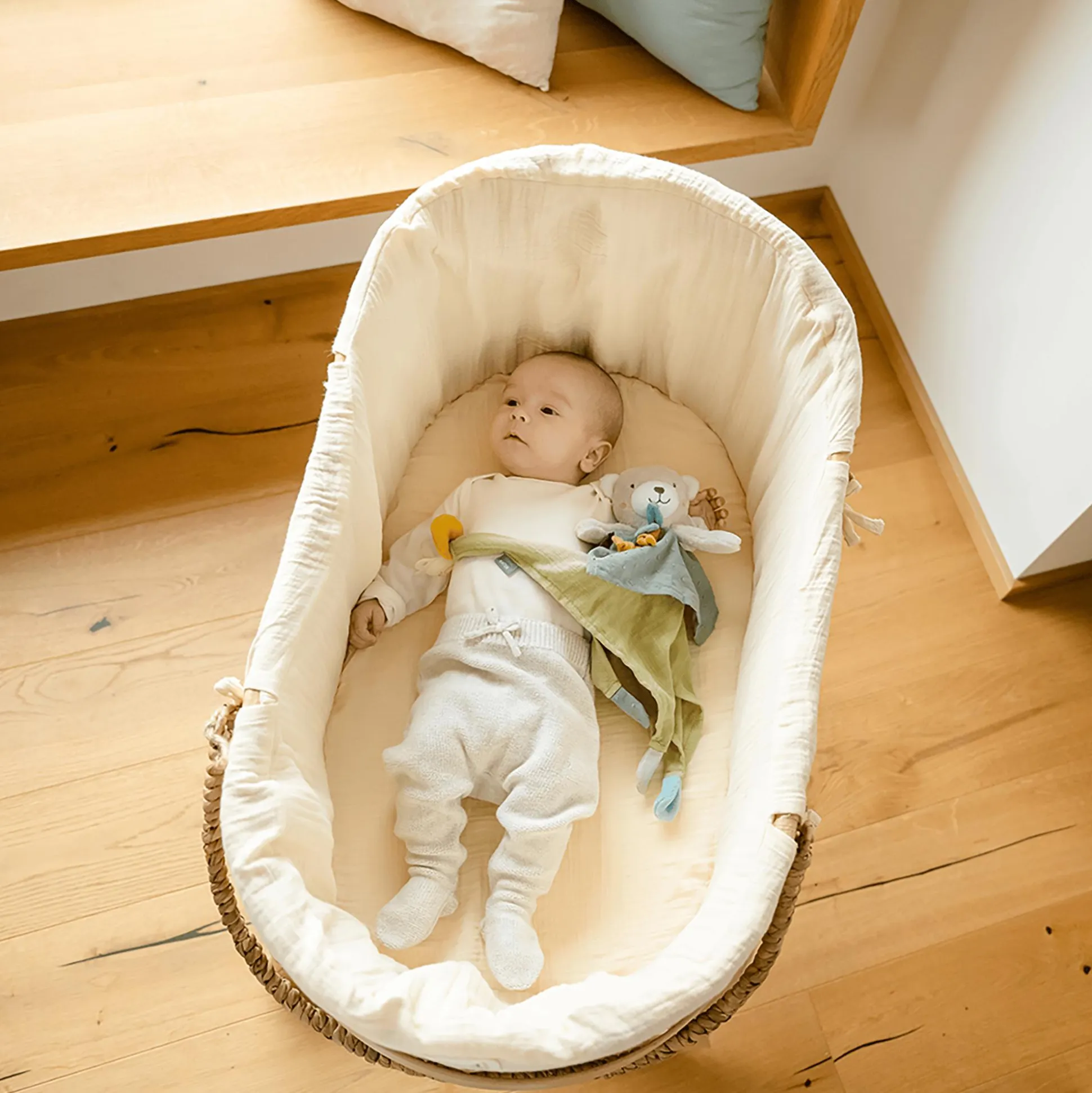 - Obermaterial Frottee, Musselin, Jersey, Nicki, Webstoff: Bio-Baumwolle / Füllung: Bio-Baumwolle