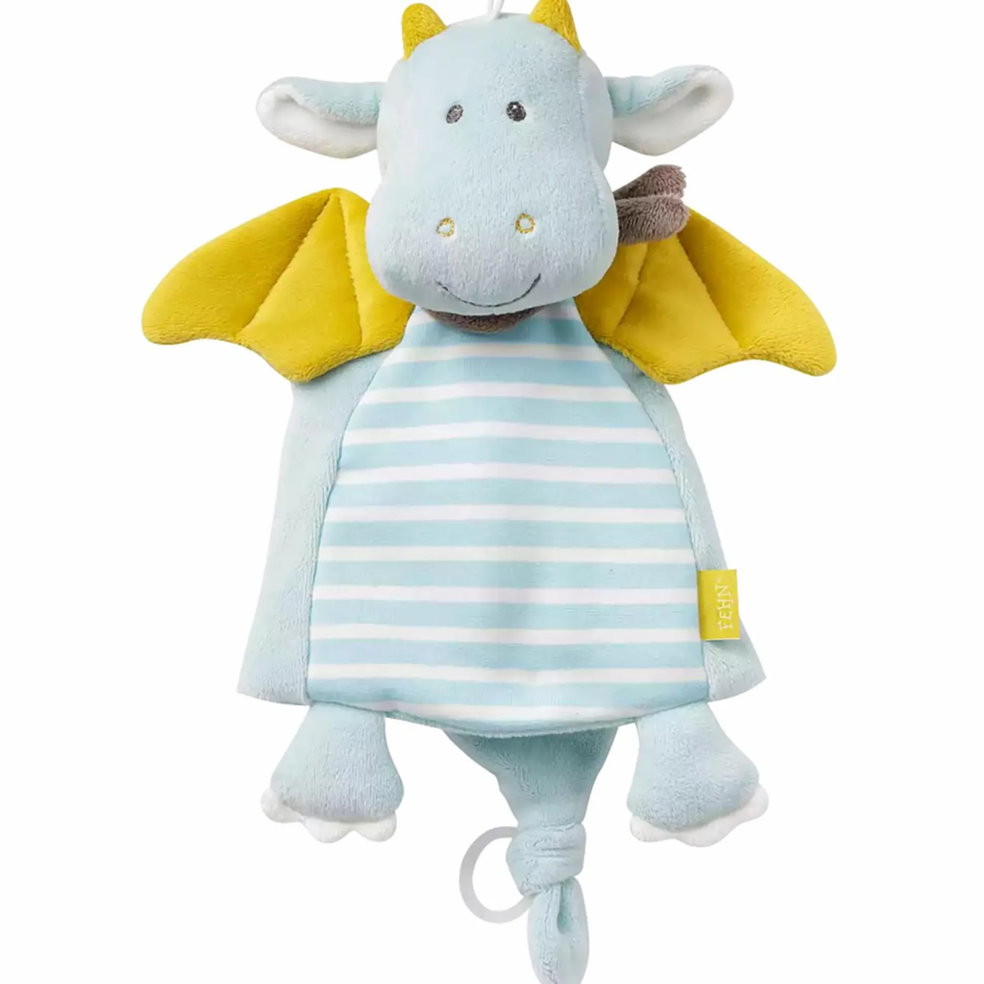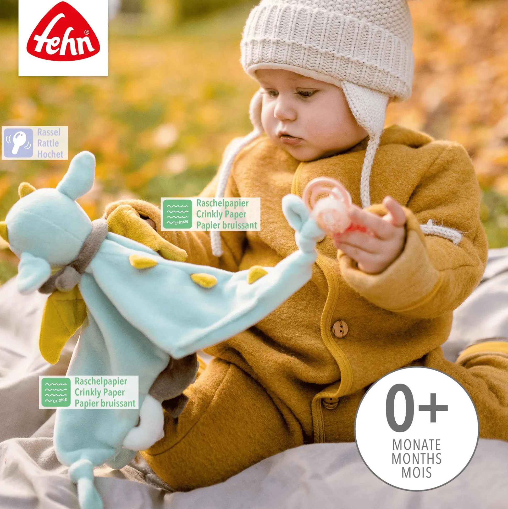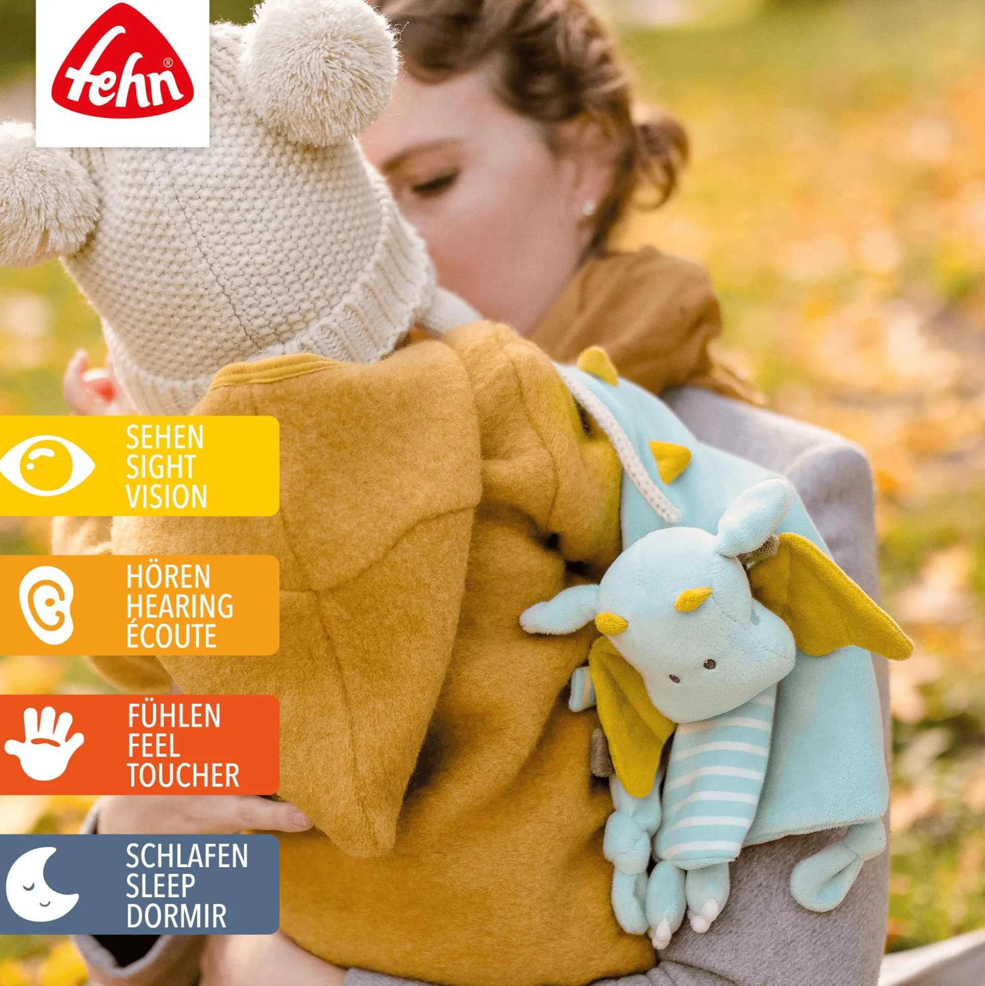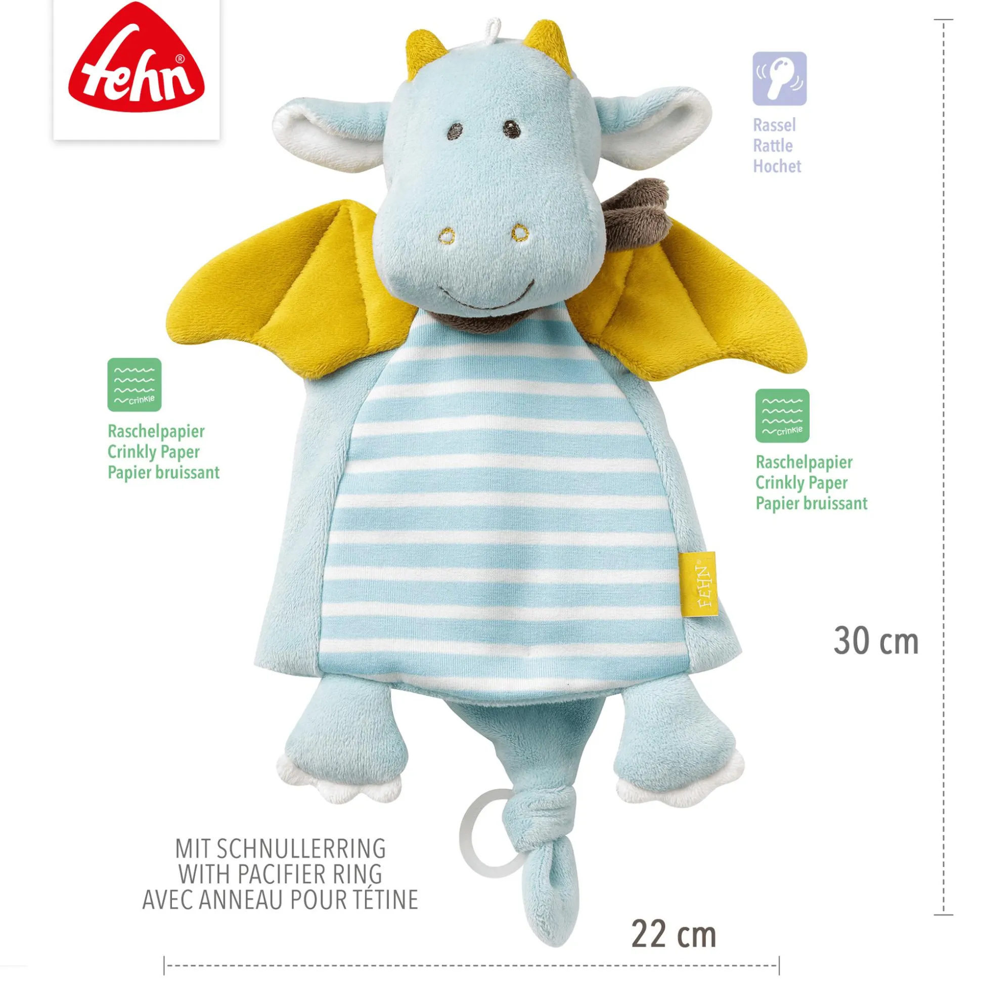 Das kuschelige Schmusetuch Drache aus der Little Castle Kollektion zaubert schon den Kleinsten ein Lächeln ins Gesicht. Es spendet Trost, Wärme und ein Gefühl von Geborgenheit und wird schnell zum besten Freund deines Babys. Neben dem Kopfkissen platziert, knuddelt sich der furchtlose Drache schnell ins Herz müder Abenteurer. Verschiedene Materialien, Ohren und Beine, drei Knoten und Raschelpapier in den Flügeln laden zum Greifen, Fühlen und Nuckeln ein. Dank des praktischen Befestigungsrings aus Silikon können Schnuller mit und ohne Henkel problemlos befestigt werden. So passt der niedliche Drache zuverlässig auf den Schnuller deines kleinen Lieblings auf und der Schnuller geht auch unterwegs nicht verloren.