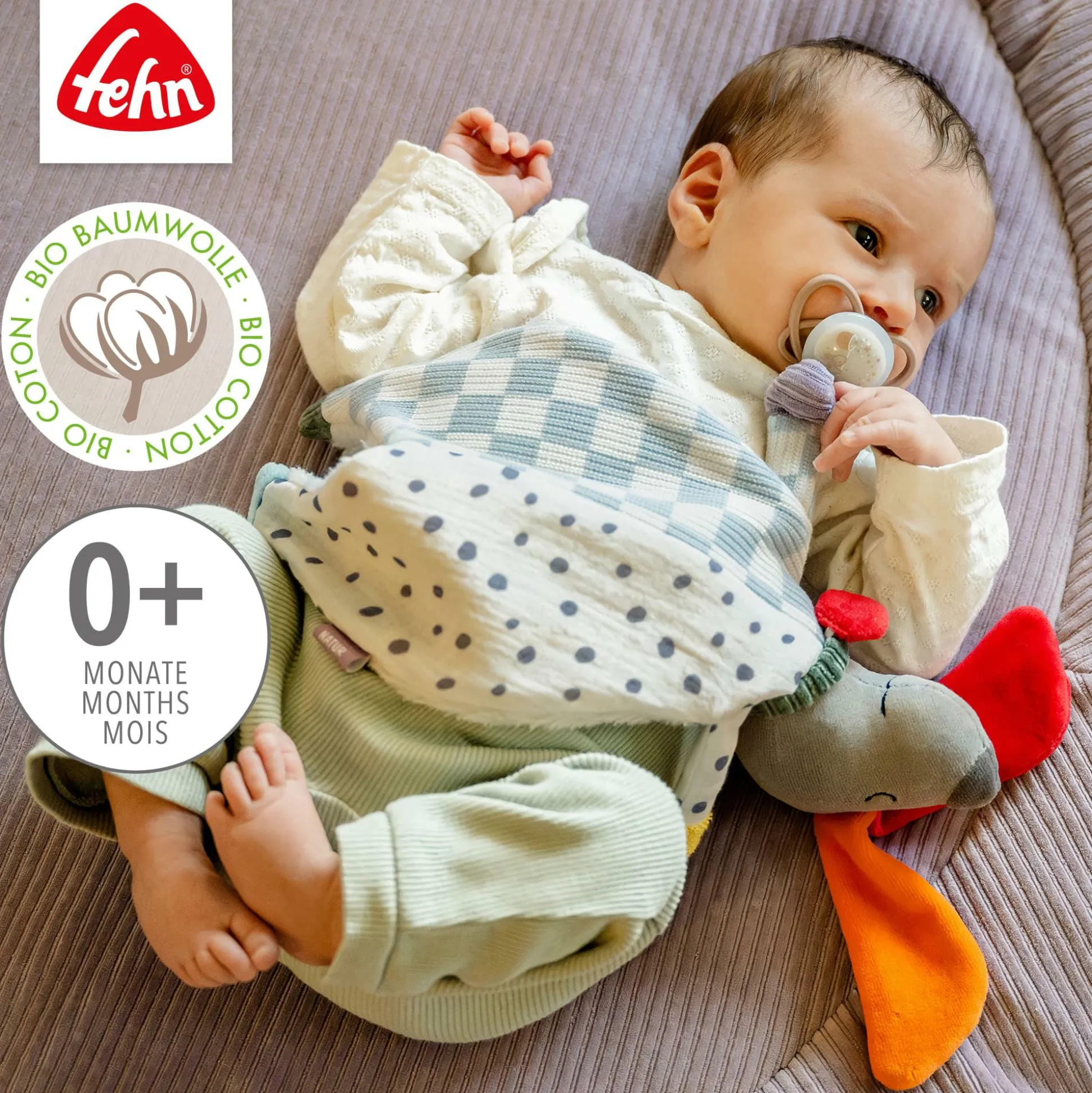Gefertigt aus weicher Bio-Baumwolle, schmiegt sich das Schmusetuch sanft an die zarte Babyhaut und lädt zum ausgiebigen Schmusen ein. Es ist nicht nur ein treuer Freund zum Kuscheln, sondern unterstützt auch die ersten kleinen Lernmomente, indem es Geborgenheit und Trost spendet.