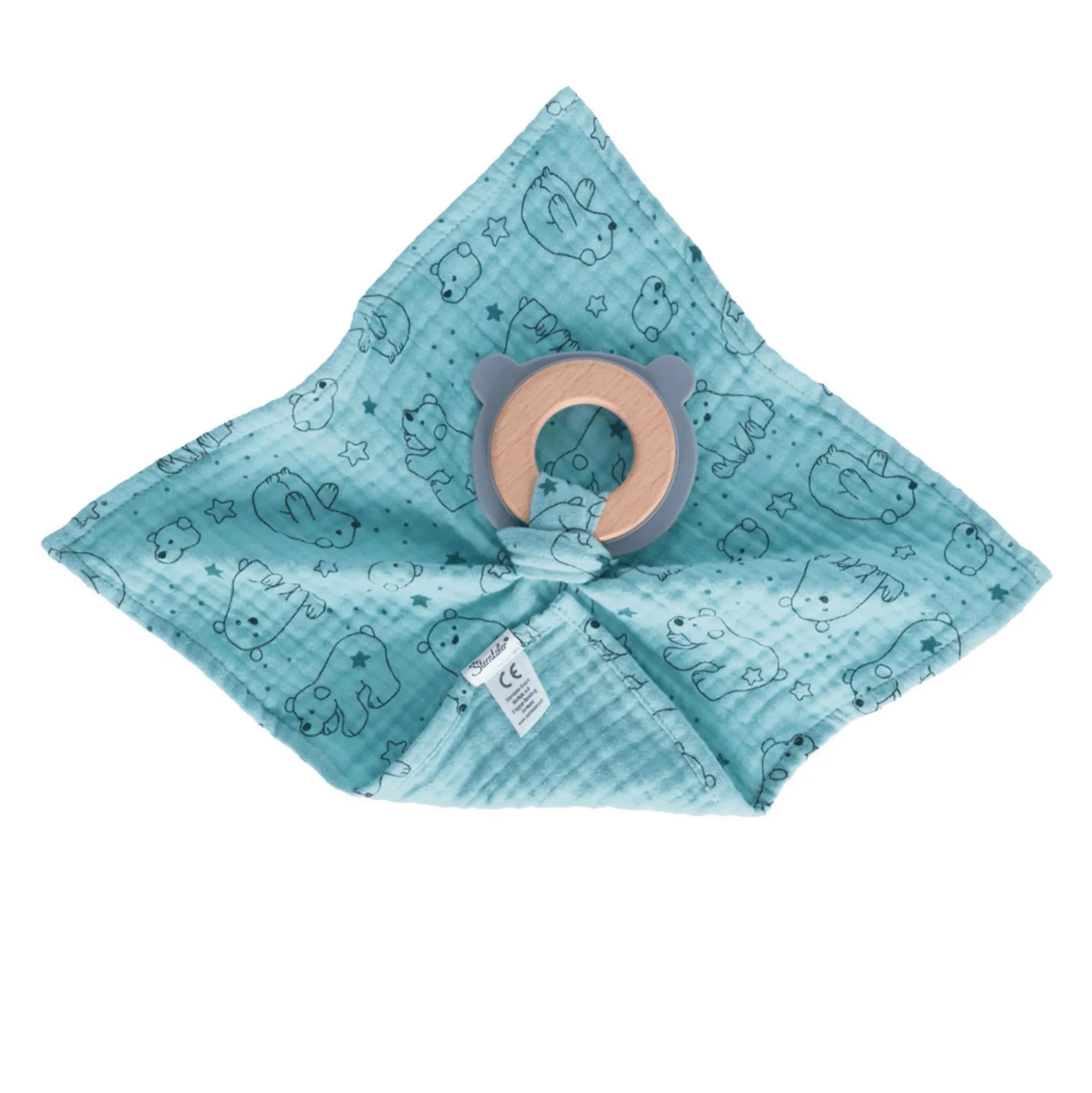- Schnuffeltuch aus weichem Musselinstoff mit niedlichem Bären Print