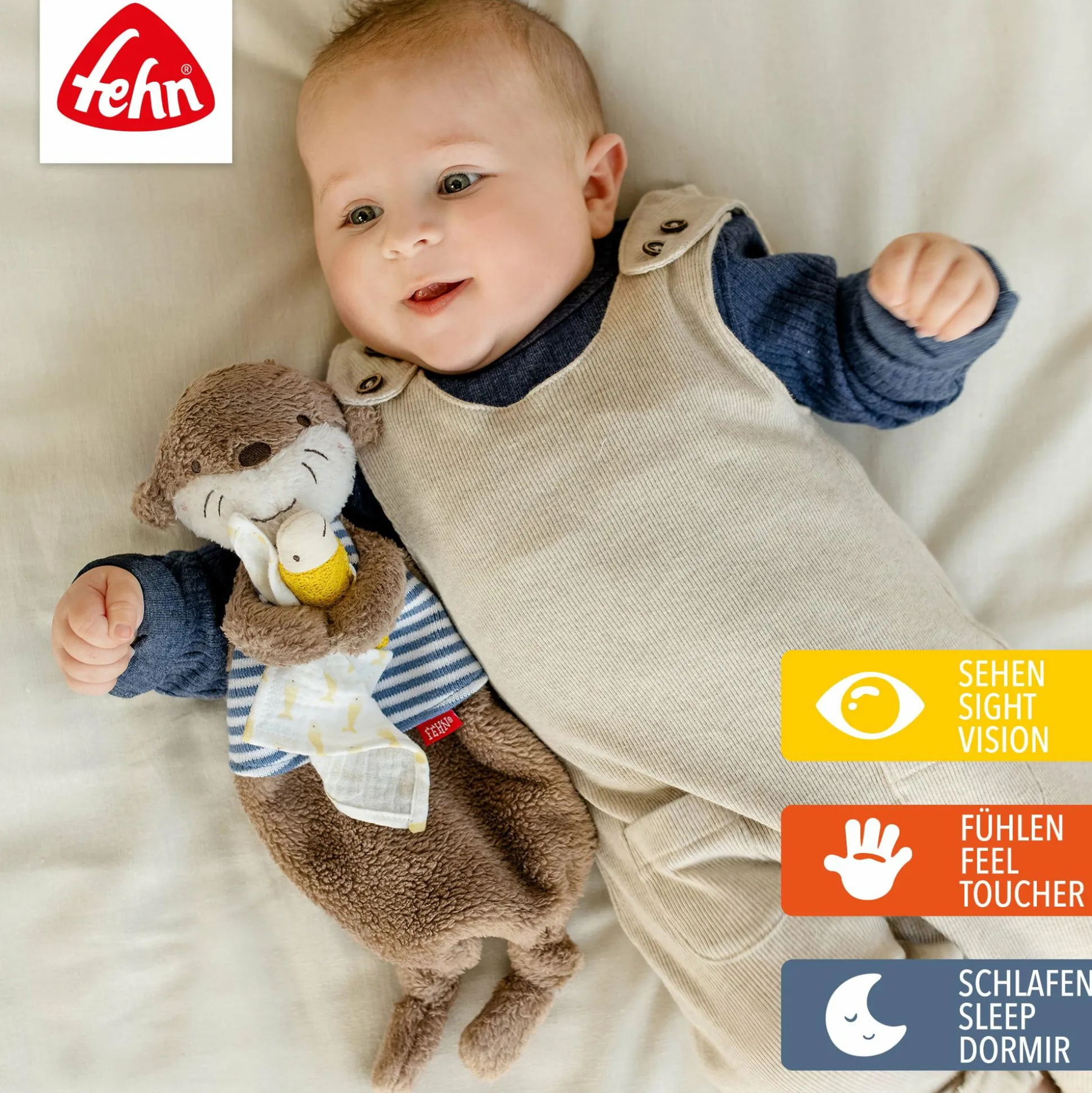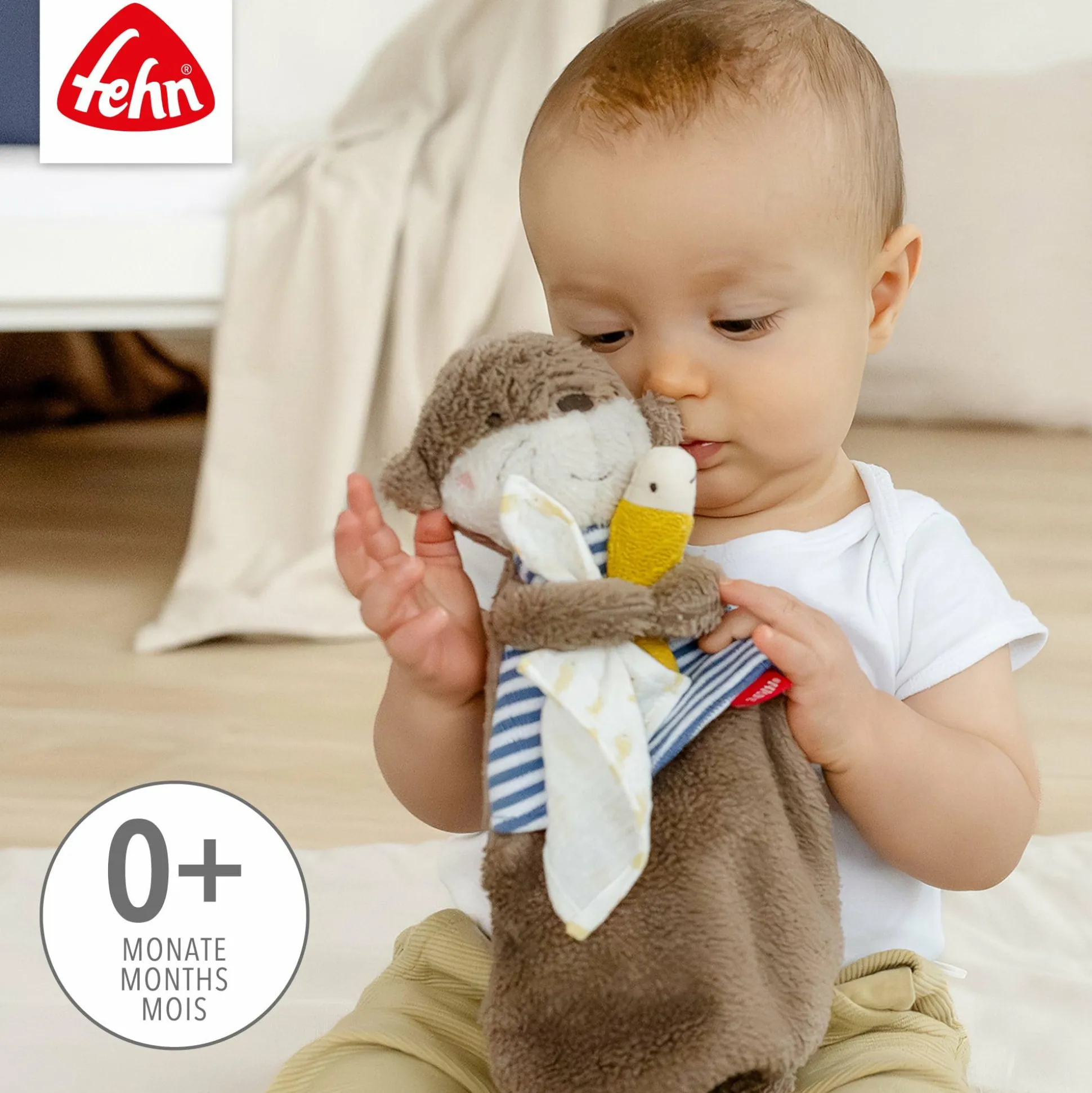 Ob zum Kuscheln oder zum Trost spenden – das Schmusetuch Otter Theo von fehn wird deinem Baby ein treuer Gefährte sein. Tagsüber ist der Otter durch die geknoteten Enden der perfekte Spielkamerad zum Knuddeln, Greifen und Liebhaben. Und nachts hilft er deinem Liebling beim Schlafen.