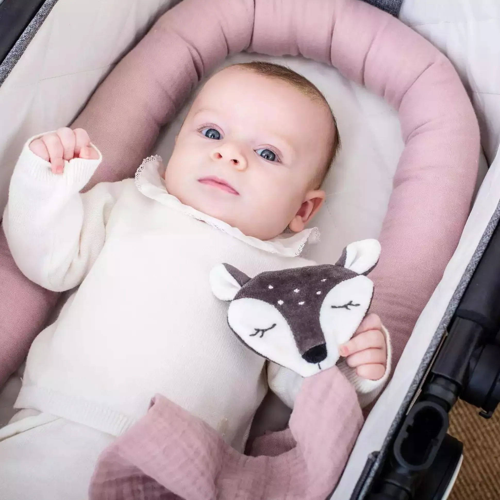 Das Schmusetuch Rehkitz von Kikadu ist durch sein natürliches Design mit verspielten Details, wie etwa dem niedlichen Rehkitz-Kopf, ein toller Freund für dein Kind. Mit dem weichen Musselin-Schmusetuch in Zartrosa wird deinem kleinen Schatz das Gefühl von Sicherheit, Geborgenheit und Vertrautheit vermittelt und dein Kind wird beim Einschlafen begleitet. Außerdem ist das Schmusetuch GOTS zertifiziert und besteht aus einem hohen Anteil an Bio-Baumwolle.