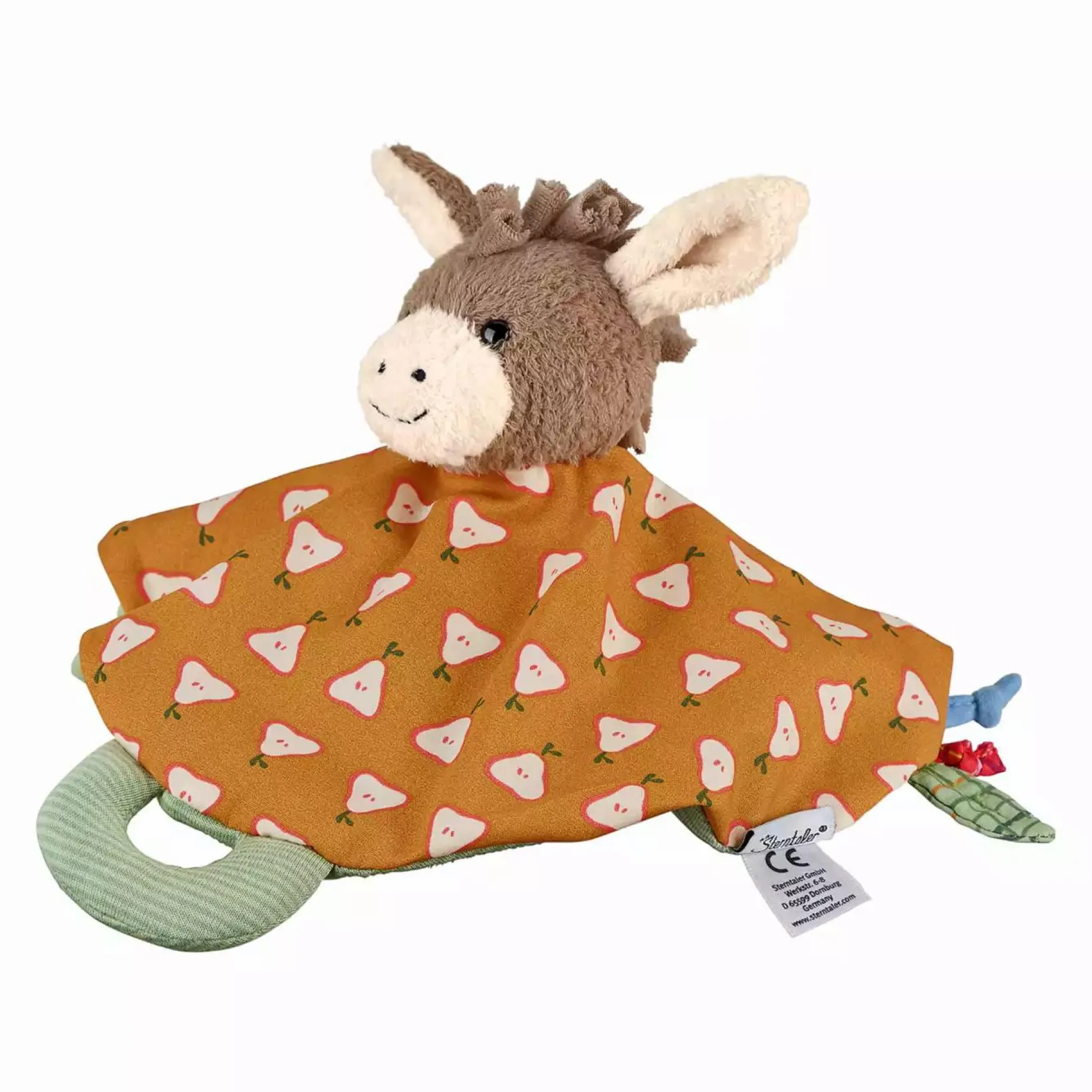 Das entzückende kleine Sterntaler Schmusetuch Esel Emmilius ist ein hübscher Begleiter deines Lieblings vom ersten Tag an. Der Einsatz der unterschiedlichen Materialien, Zipfel und Knoten regen zum Greifen, Begreifen, Schmusen und Trösten an. Das Schnuffeltuch ist aus der „Kindergarten“ Kollektion von Sterntaler, ohne Rassel oder Quietsche ausgestattet und daher auch der optimale Wegbegleiter im Kindergarten.