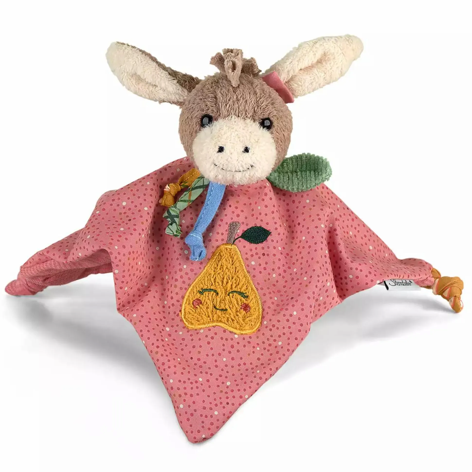 Das entzückende kleine Sterntaler Schmusetuch Esel Emmily ist ein hübscher Begleiter deines Lieblings vom ersten Tag an. Der Einsatz der unterschiedlichen Materialien, Zipfel und Knoten regen zum Greifen, Begreifen, Schmusen und Trösten an. Das Schnuffeltuch ist aus der „Kindergarten“ Kollektion von Sterntaler, ohne Rassel oder Quietsche ausgestattet und daher auch der optimale Wegbegleiter im Kindergarten.